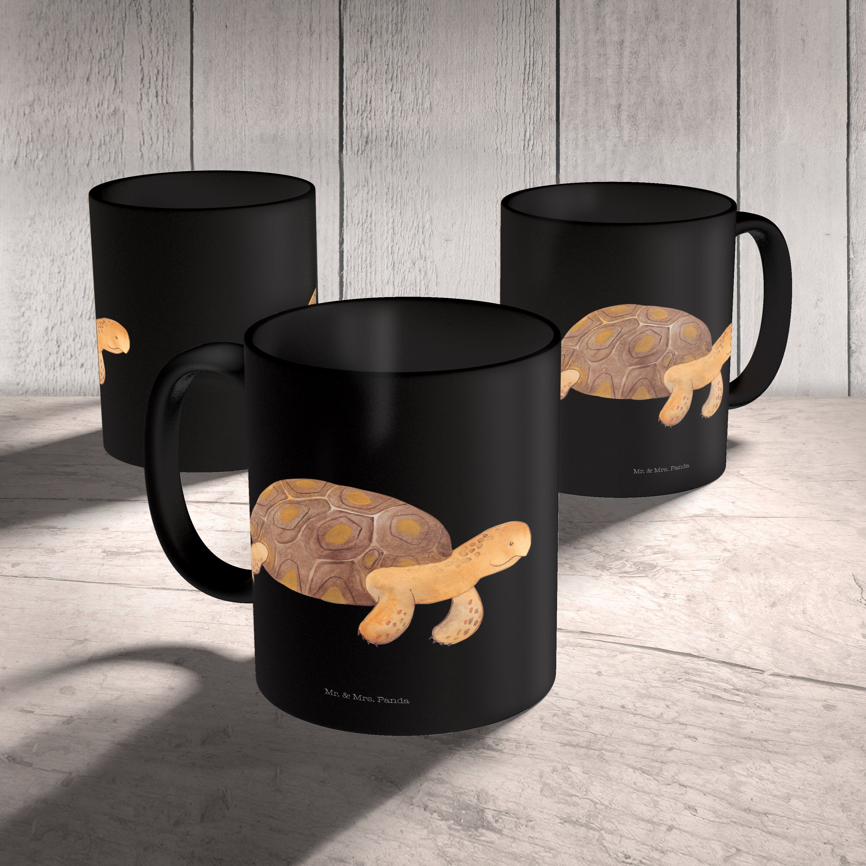 Tasse Schildkröte marschiert - ohne Spruch - Keramik Schwarz - Schwarz
