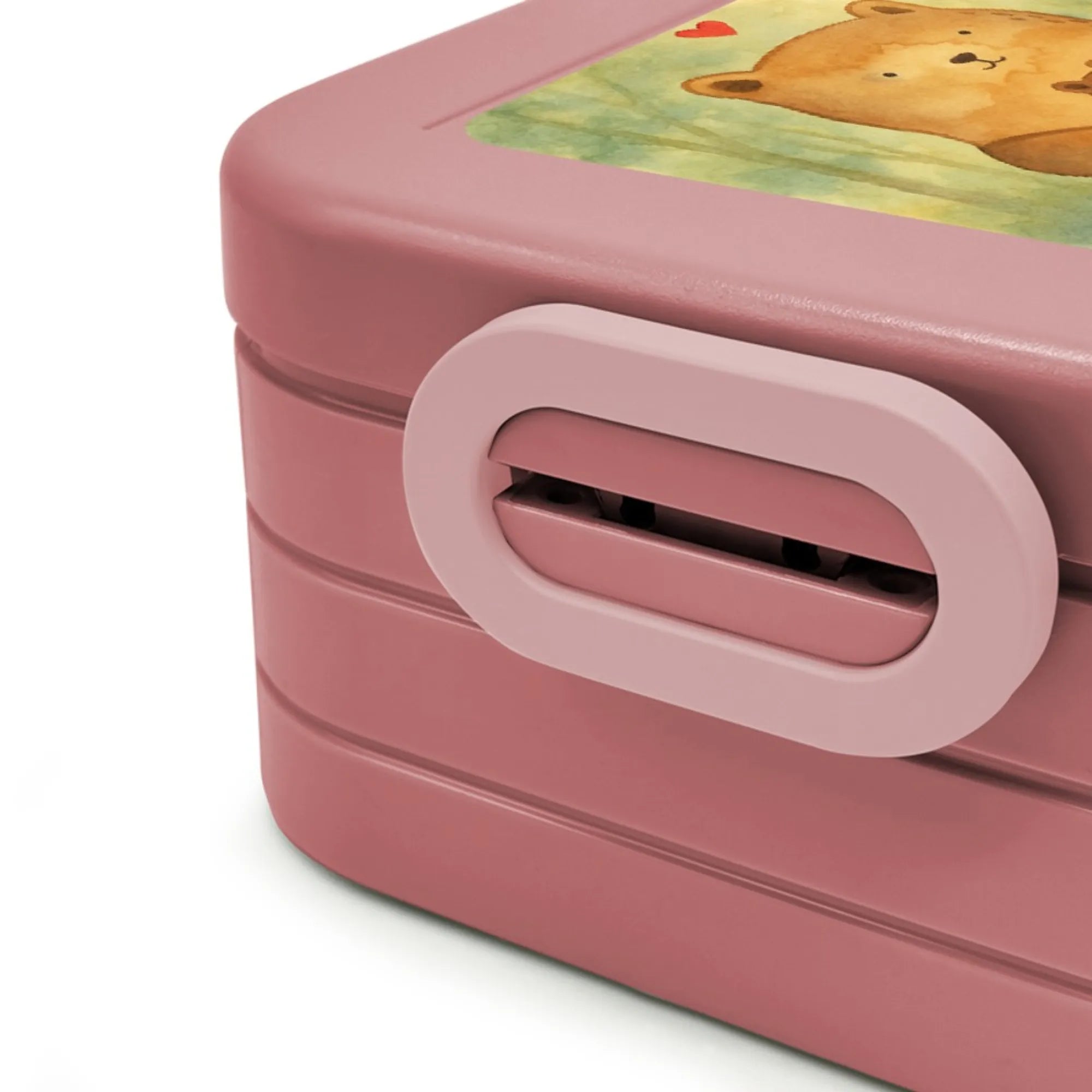 Das Motiv wurde liebevoll von Mrs. Panda aquarellartig gezeichnet und gehört zur herzlichen Bär-Kollektion. Du schenkst nicht nur eine praktische Lunchbox oder Brotdose, sondern auch ein emotionales Andenken, das Kinder und Eltern begleitet. Perfekt als Brotdose Baby, Bento-Brotdose Kinder oder als Teddy Lunchbox für kleine Bärenfans.