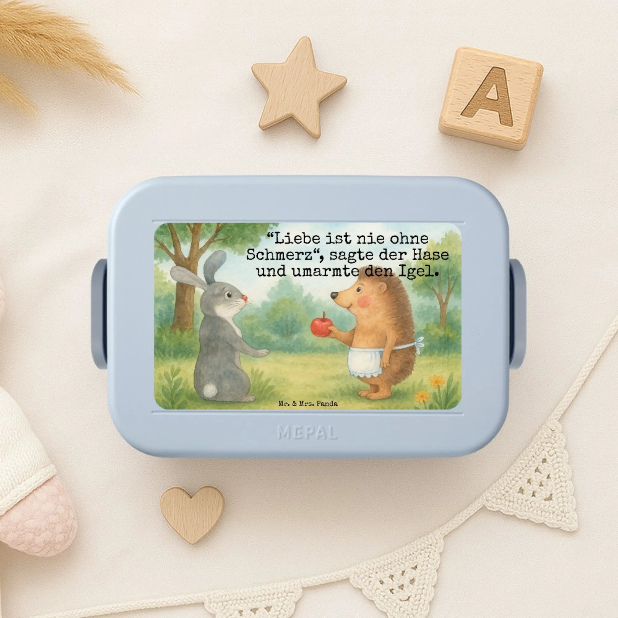 MEPAL Bentobox Hase Igel Design - mit Spruch - Blau Pastell