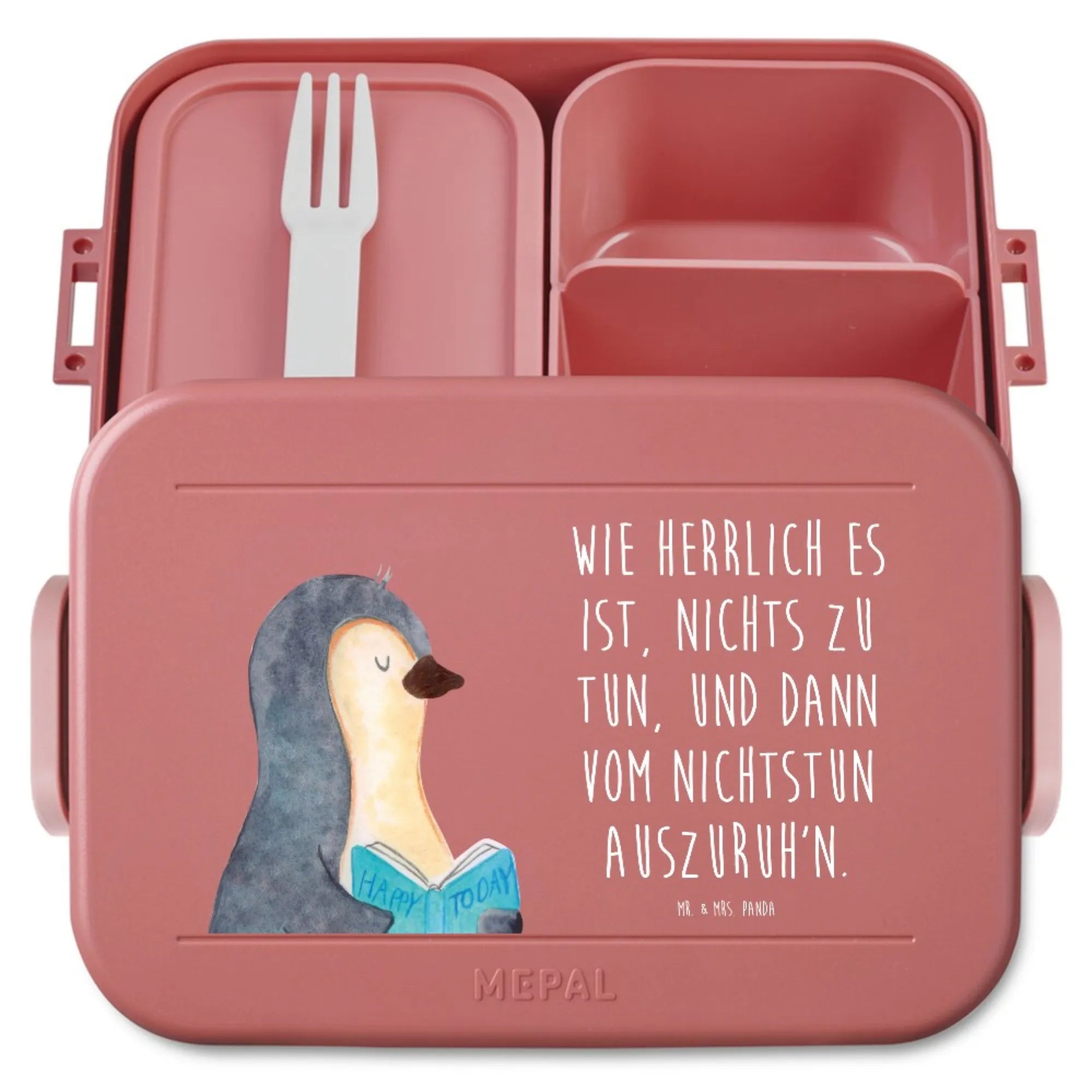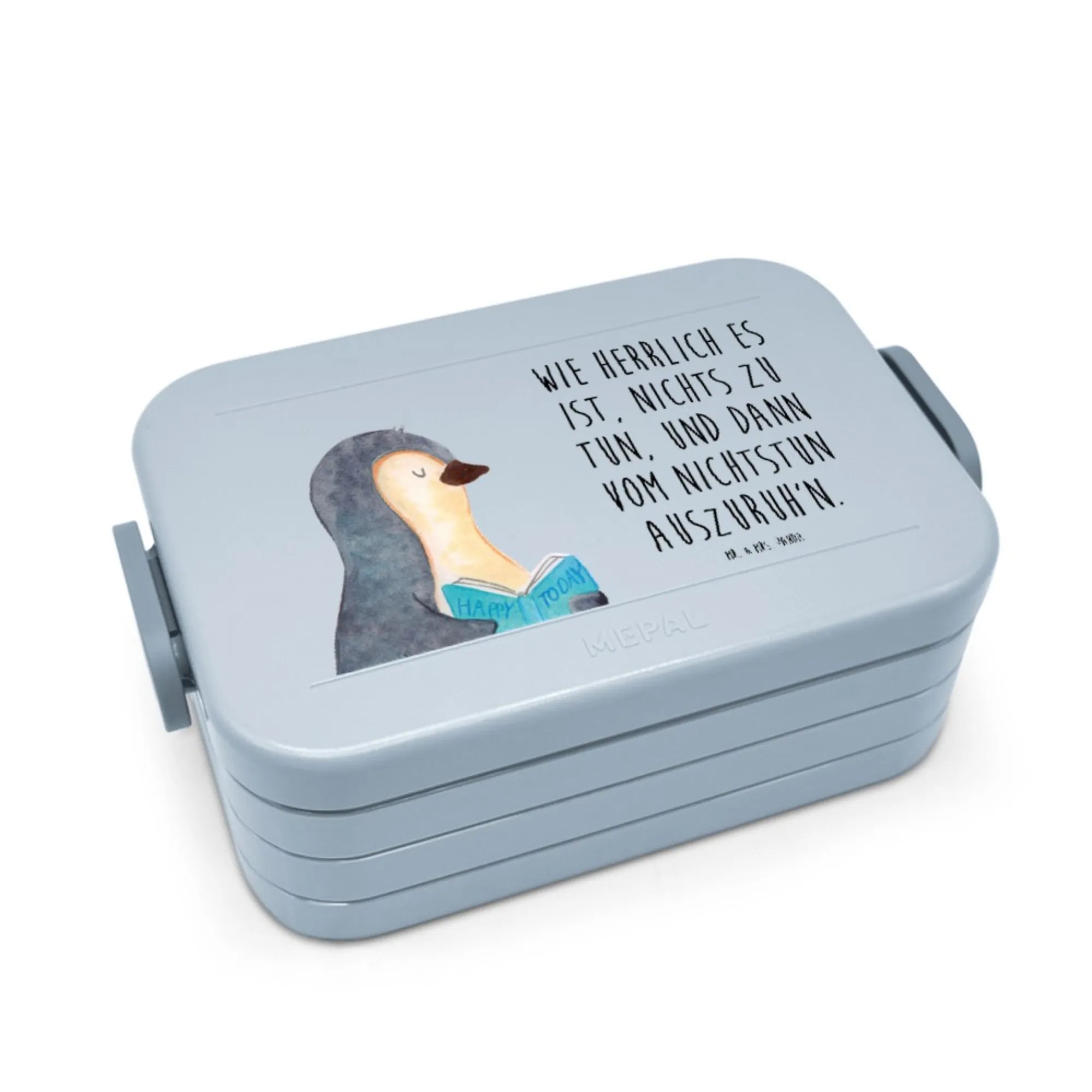 MEPAL Bentobox Pinguin Buch Motiv Brotdose, Bentobox, Lunchbox, Pinguin, Freizeit, Pinguine, Nichtstun, Urlaub, Ferien, Buch, Lesen, Bücherwurm, Faulenzen