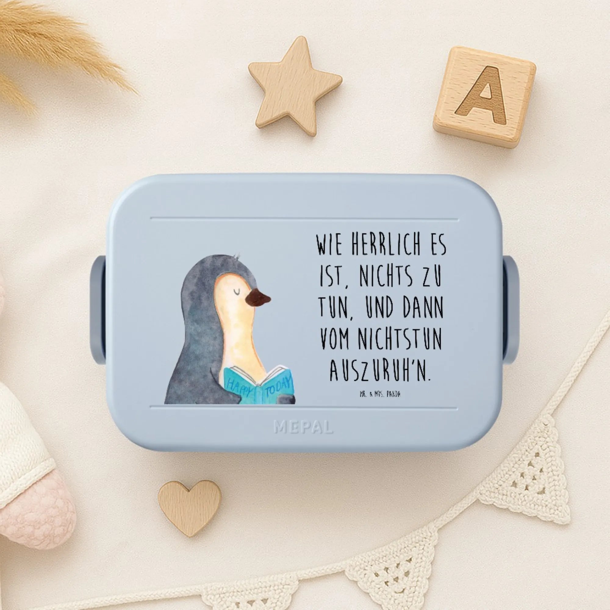 MEPAL Bentobox Pinguin Buch Motiv - Blau Pastell