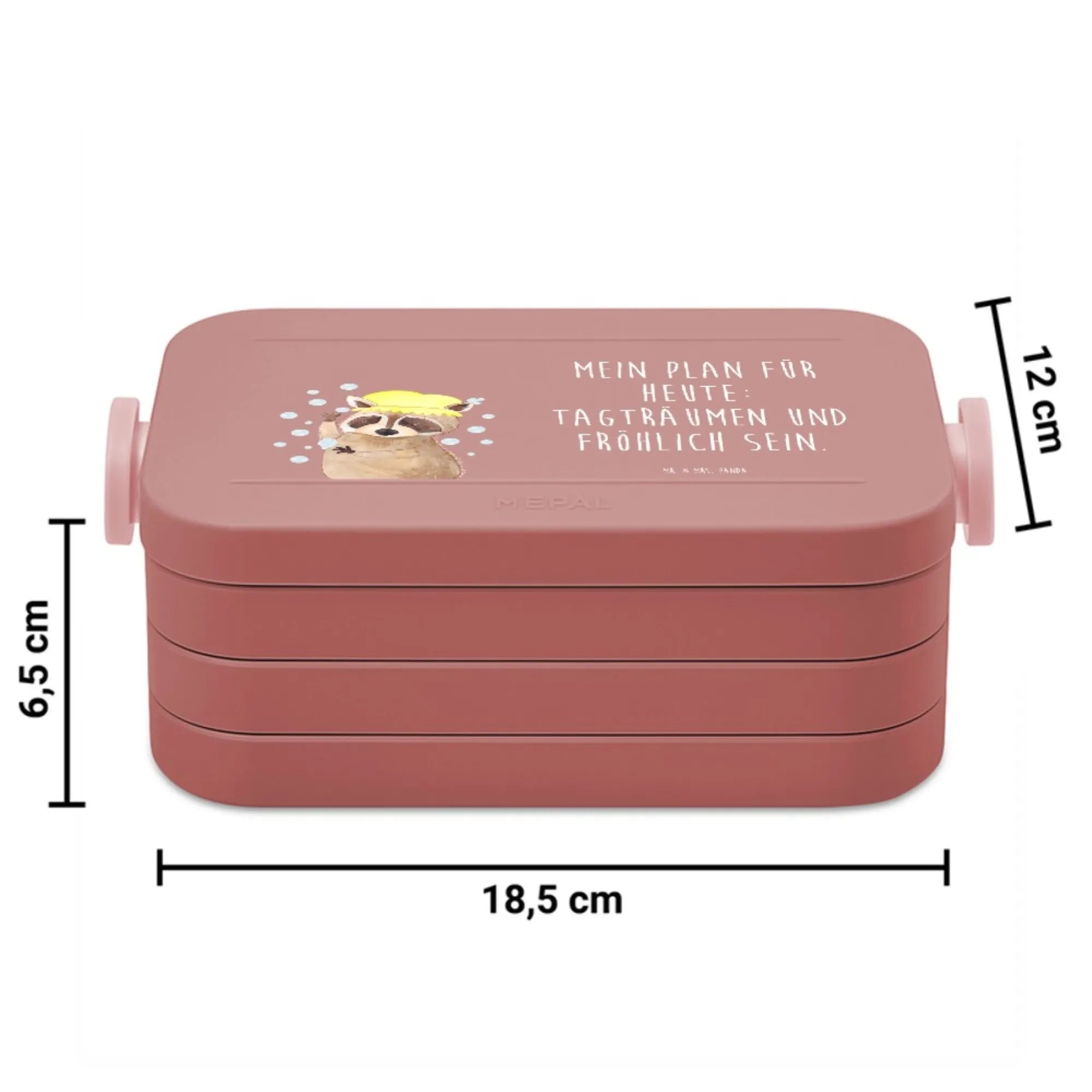 Lunchbox MEPAL von Mr. & Mrs. Panda – deine flexible Bento-Brotdose für jeden Tag. Mit herausnehmbaren Bento-Einsätzen und einer kleinen Snackgabel behältst du jederzeit die Kontrolle über Portionsgrößen und Ordnung. Die Box ist BPA-frei und lebensmittelecht, damit du unbesorgt essen kannst. Schüssel und Einsätze sind mikrowellengeeignet (ohne Deckel), so lässt sich dein Mittagessen unkompliziert erwärmen. Nach dem Essen kommt alles in die Spülmaschine – super praktisch. Die Lunchbox ist in den Farben Salbeigrün, Hellblau und Pastellrot verfügbar. Maße: 188 mm x 61 mm x 61 mm, Inhalt: 900 ml, Gewicht: 325 g. Material: PP, TPE, ABS. Ideal auch als personalisiertes Geschenk dank Druckfläche von 130 mm x 79 mm. Die clevere Aufteilung sorgt dafür, dass Brot, Snacks und Salate getrennt bleiben und frisch aussehen. Ob Schule, Uni, Büro oder Ausflug – diese Lunchbox ist leicht, robust und vielseitig. Gönn dir die praktische Lösung für unterwegs und pack dir jeden Tag ein bisschen Freude mit in die Pause.