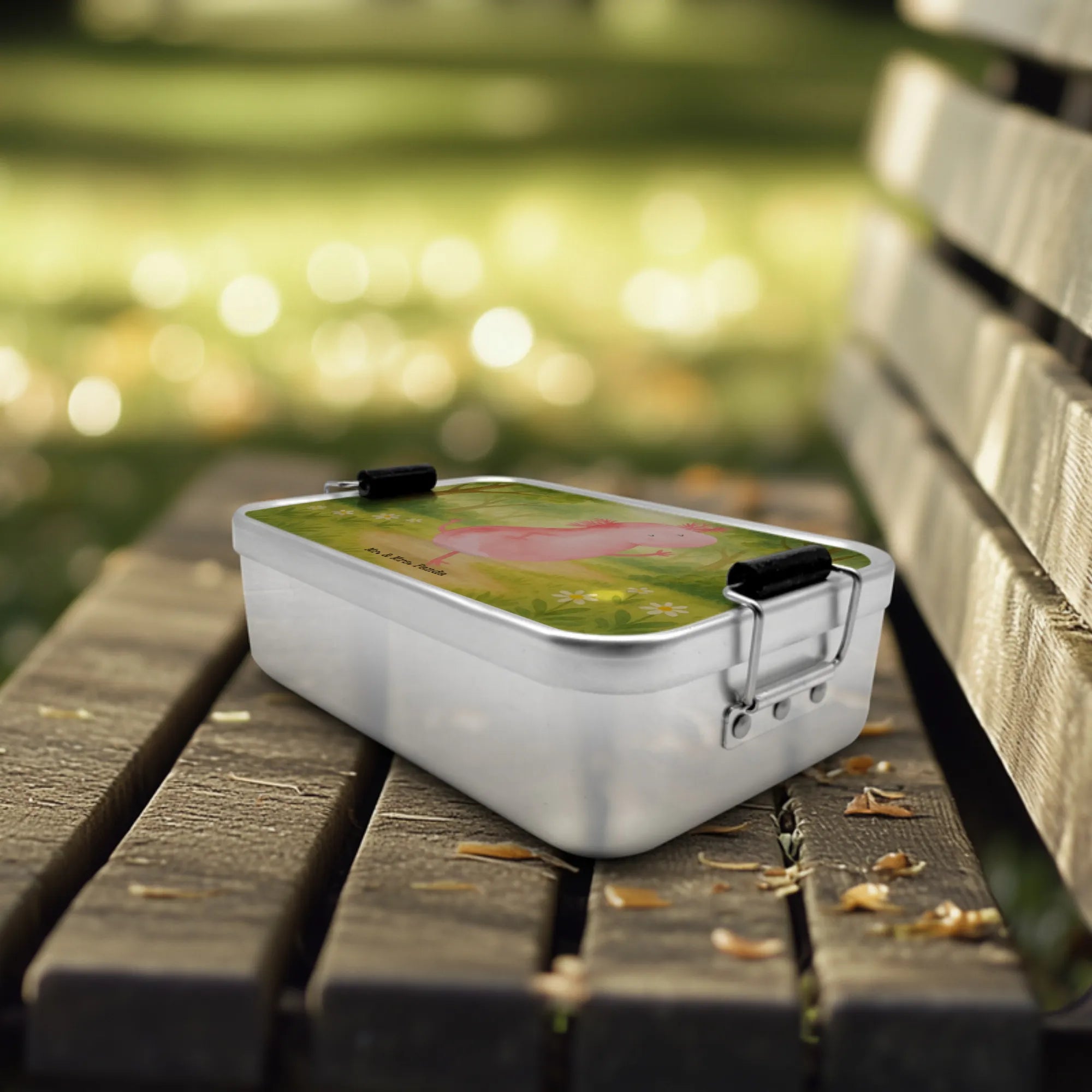 Mit der Metall Brotdose "Axolotl tanzt" von Mr. & Mrs. Panda bringst du Farbe und Freude in jede Pause. Das fröhliche Axolotl-Motiv in warmen Gelb- und Grüntönen zeigt einen kleinen Tänzer aus der Unterwasserwelt und zaubert dir beim Öffnen der Lunchbox sofort ein Lächeln ins Gesicht. Ob als Schul Brotdose, Brotdose Arbeit oder Geschenk für die beste Freundin – diese Brotdose Metall ist ein stilvoller und praktischer Begleiter.