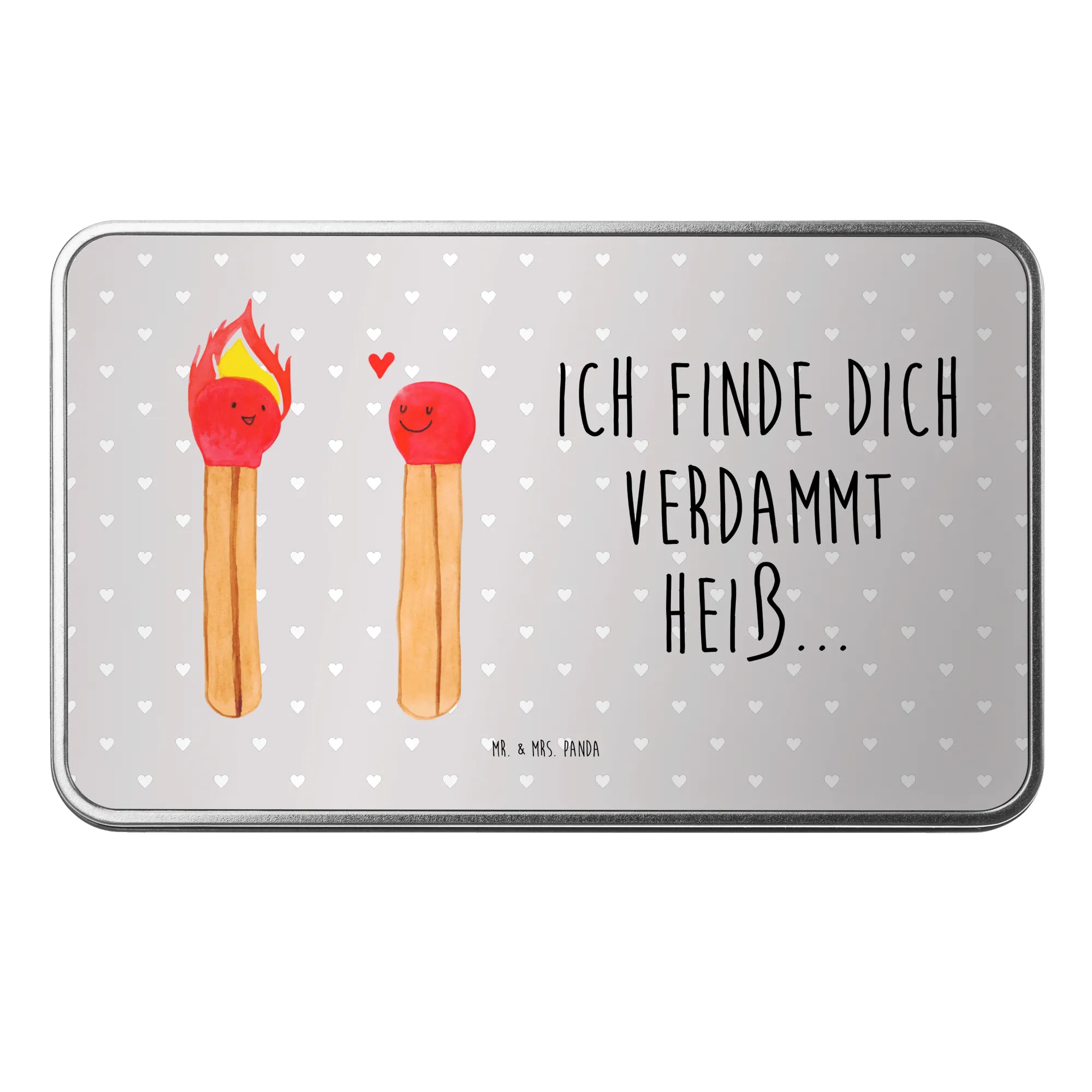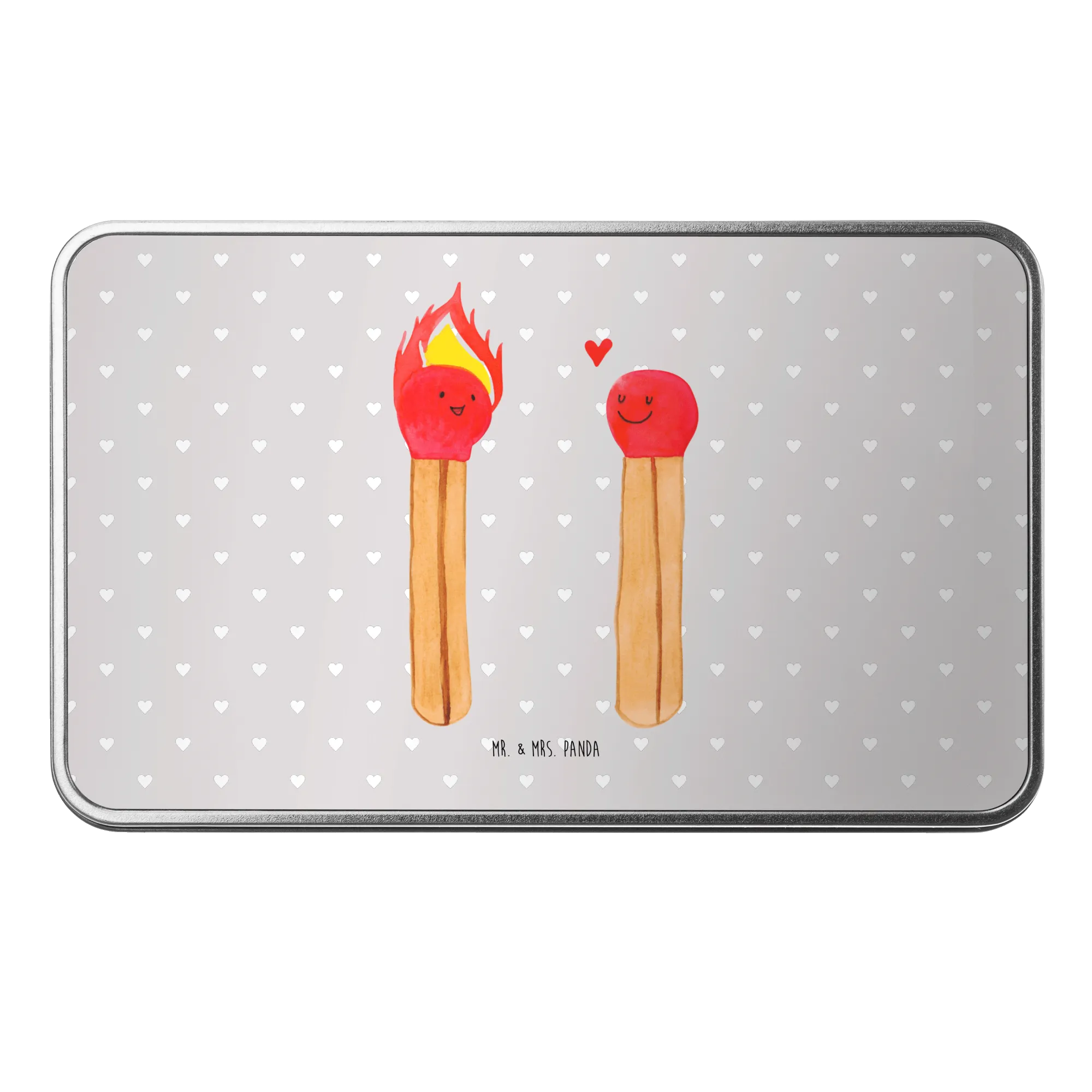 Die wunderschöne rechteckige Metalldose von Mr. & Mrs. Panda ist das perfekte Geschenk für alle verliebten Seelen! Mit einem liebevollen Motiv von zwei fröhlichen Streichhölzern, die sich zueinander neigen, bringt diese Dose ein Lächeln auf jedes Gesicht. Das linke Streichholz flüstert seine Gefühle mit einem roten Kopf und gelben Flammen, während das rechte Streichholz ebenfalls voller Freude ist und ein Herz zwischen beiden strahlt. Dieser besondere Anblick symbolisiert die warme Verbundenheit zwischen Partnern und eignet sich hervorragend als Geschenk für Verliebtsein, für den Freund, die Freundin oder den Ehepartner.