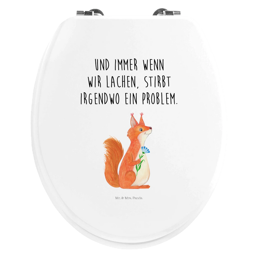 Der Motiv WC Sitz Eichhörnchen Blume von Mr. & Mrs. Panda ist mehr als nur ein praktisches Badezimmeraccessoire – er bringt eine ordentliche Portion gute Laune in dein Zuhause! Mit seinem fröhlichen Eichhörnchen, das eine Blume in der Hand hält, sorgt dieser Toilettendeckel nicht nur für höhen Sitzkomfort, sondern auch für ein Lächeln auf deinem Gesicht.