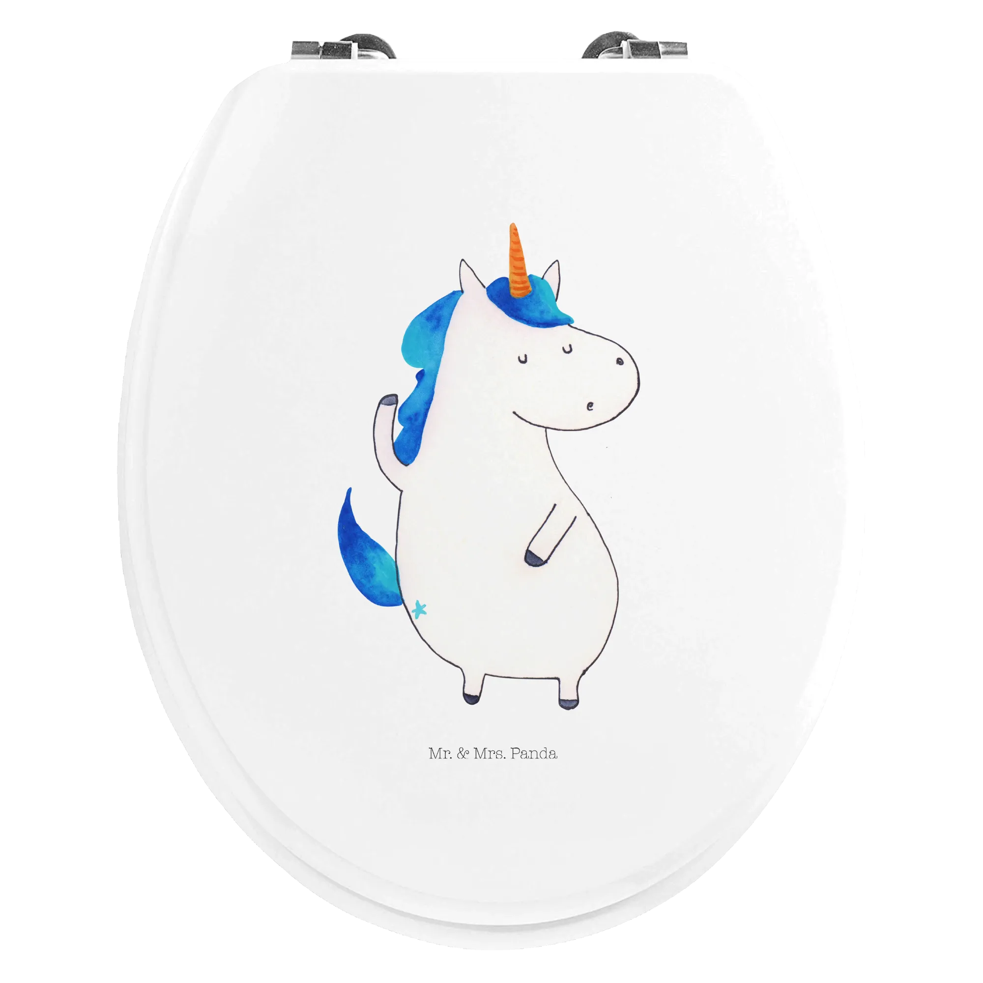 Sei bereit, die Blicke deiner Gäste auf diesen fantastischen WC-Sitz zu ziehen! Lebensfreude, Liebe und coole Sprüche – all das findet sich vereint im Motiv WC Sitz Einhorn Mann von Mr. & Mrs. Panda!