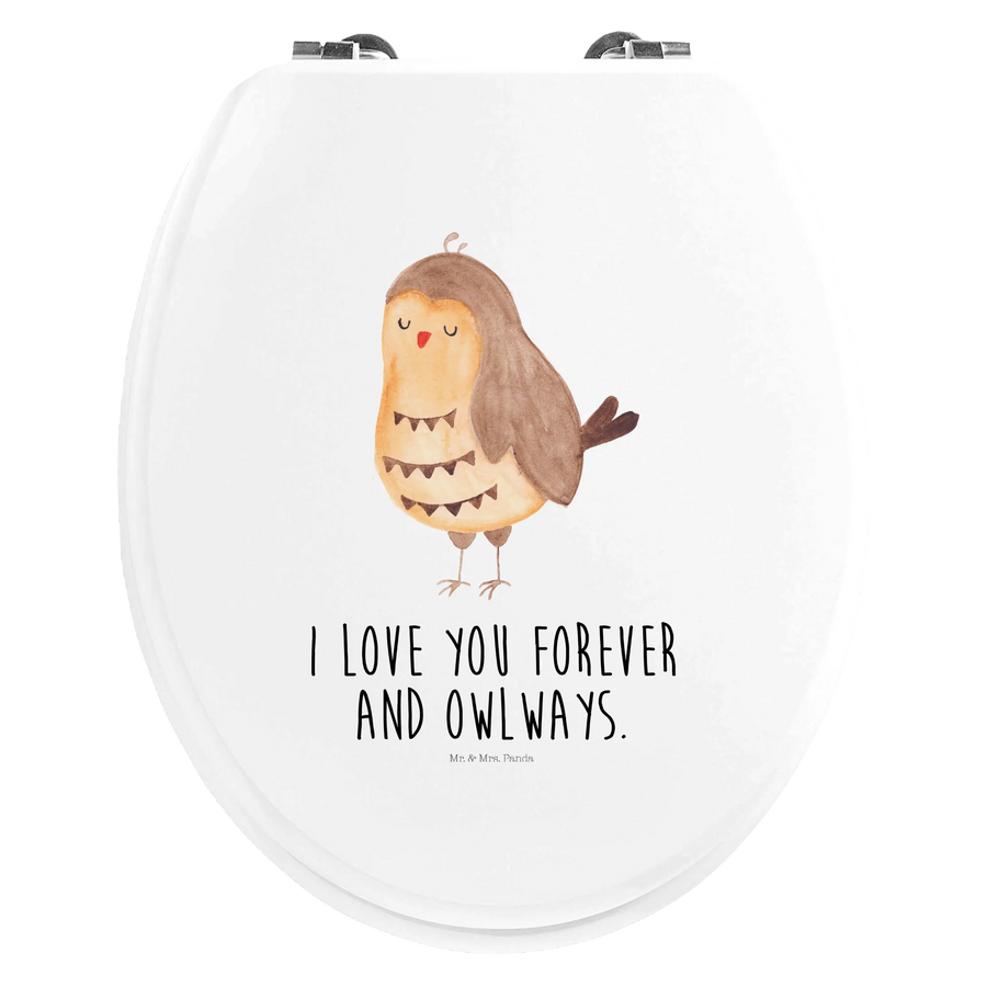 Motiv WC Sitz Eule Zufrieden - mit Spruch - Hartfaser Holzkern Weiß - Weiß