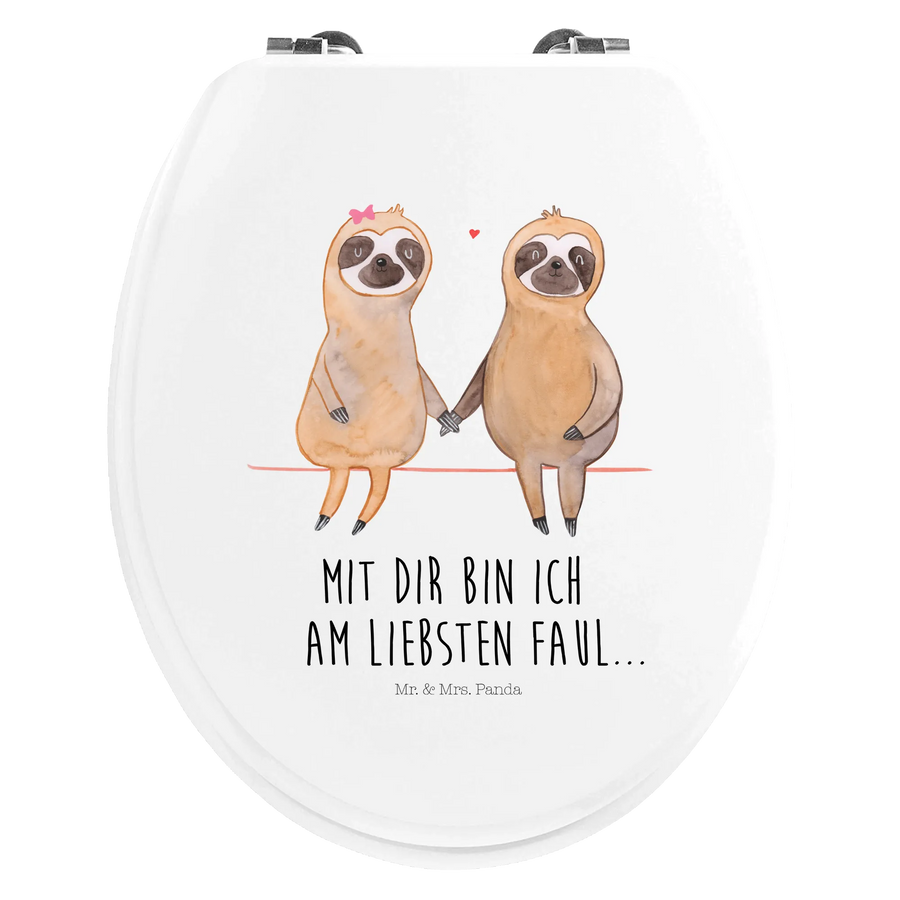 Entdecke den bezaubernden Motiv WC Sitz Faultier Pärchen von Mr. & Mrs. Panda – der perfekte Begleiter für diejenigen, die das Leben lieber entspannt angehen. Dieses liebevoll gestaltete Aquarell zeigt ein süßes Faultierpaar, das sich an den Händen hält und die süße Botschaft von Liebe und Langsamkeit verkörpert.