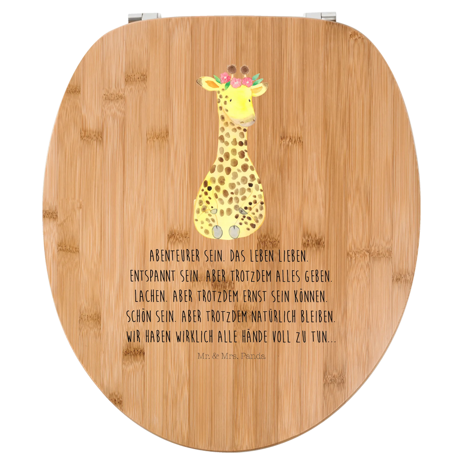 Motiv WC Sitz Giraffe Blumenkranz - mit Spruch - Bambus - Transparent