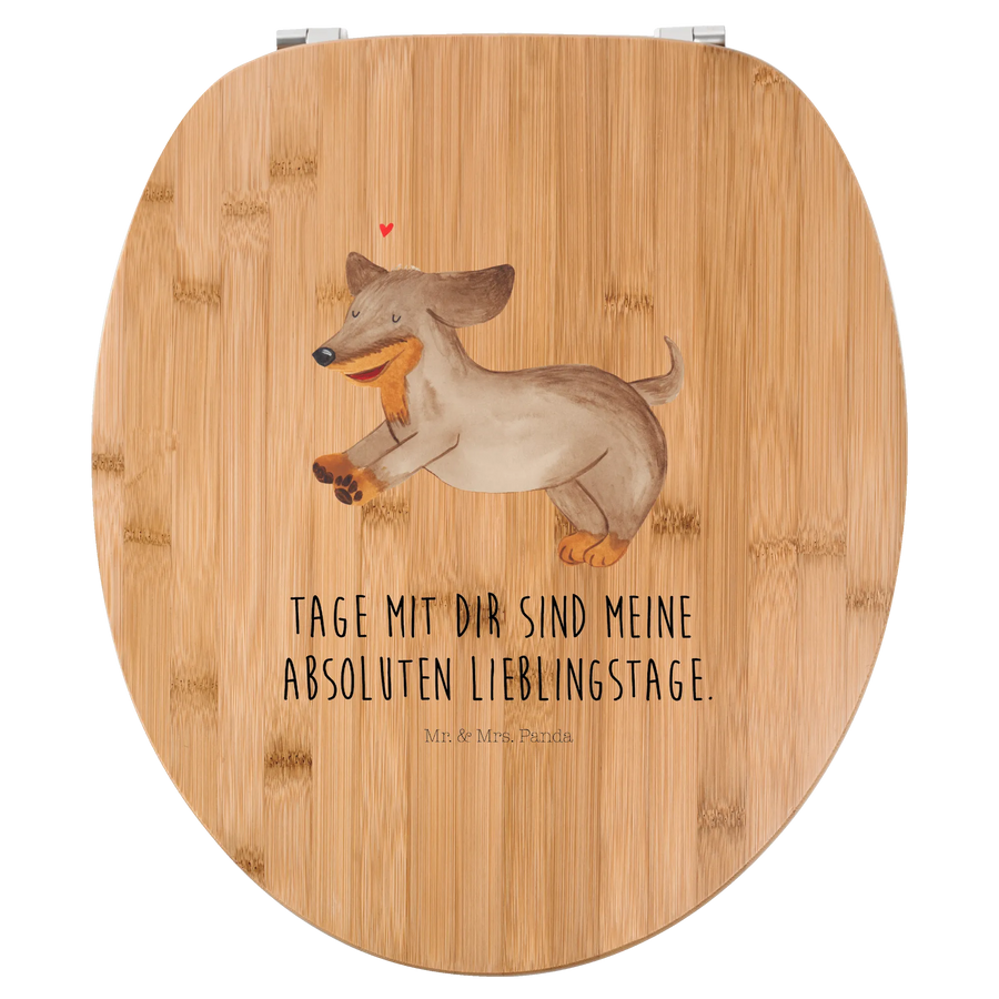 Motiv WC Sitz Hund Dackel fröhlich - mit Spruch - Bambus - Transparent
