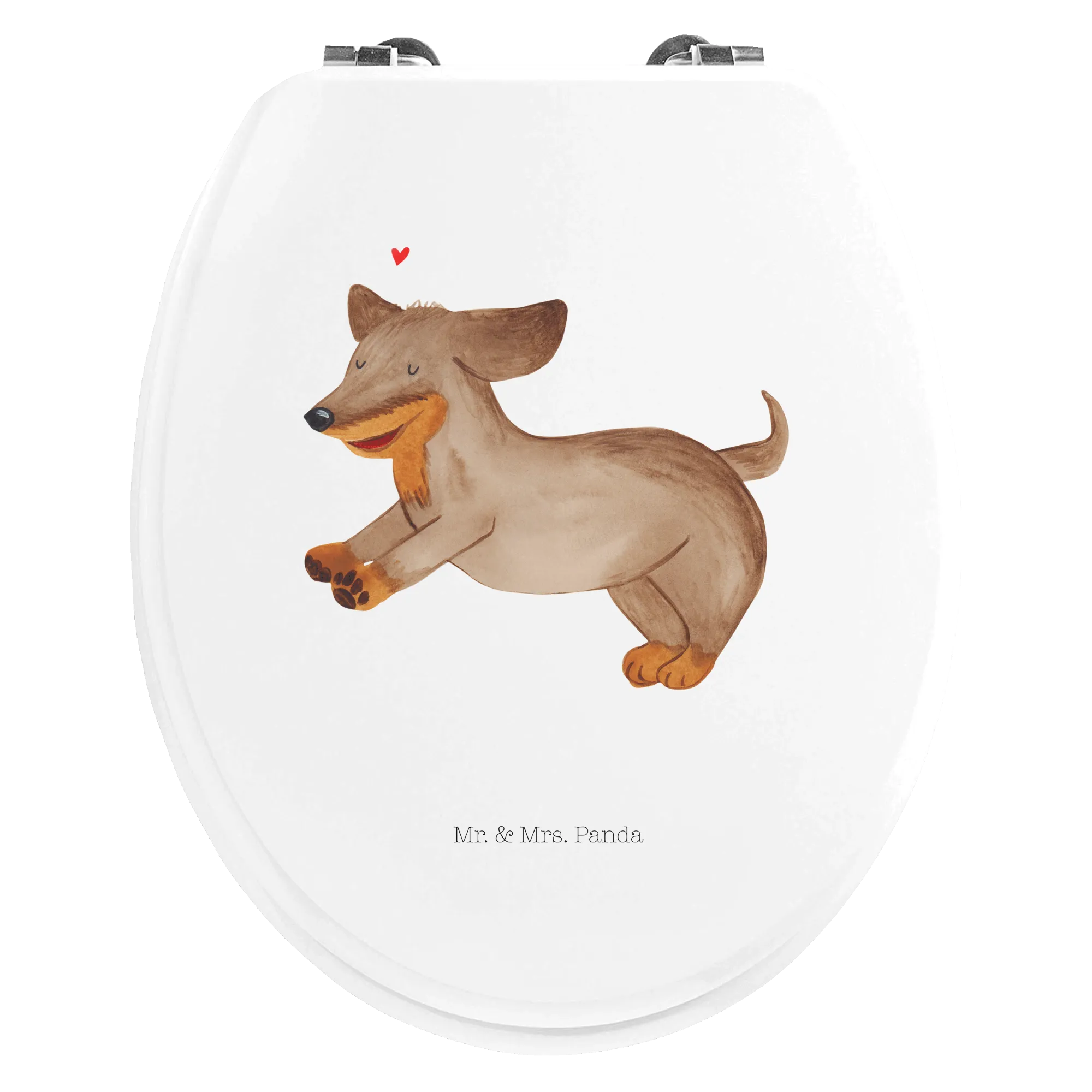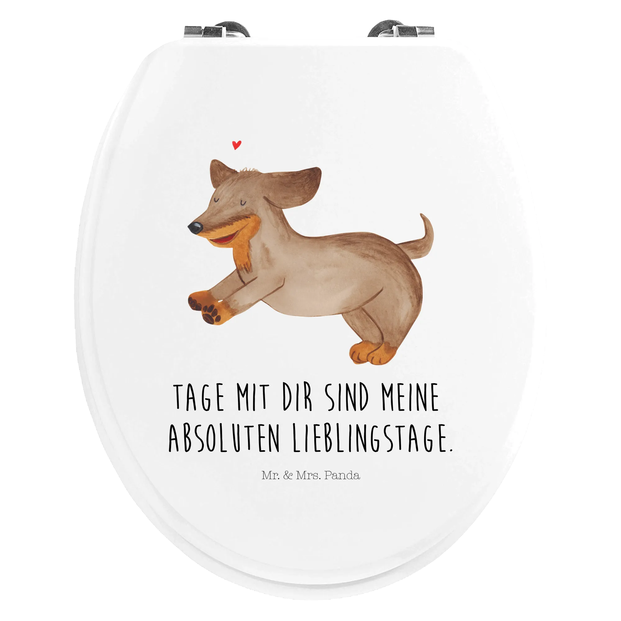 Dieser süße WC-Sitz mit dem fröhlichen Dackel-Motiv bringt jede Menge Lebensfreude und Spaß in deinen Alltag. Der Dackel springt regelrecht vor Freude und erinnert dich daran, wie schön die Zeit mit deinem vierbeinigen Freund ist. Mit dem Slogan 'Tage mit dir sind meine absoluten Lieblingstage', der im Herzen der Hunde Kollektion von Mr. & Mrs. Panda verankert ist, wird jeder Besuch zur kleinen Auszeit.