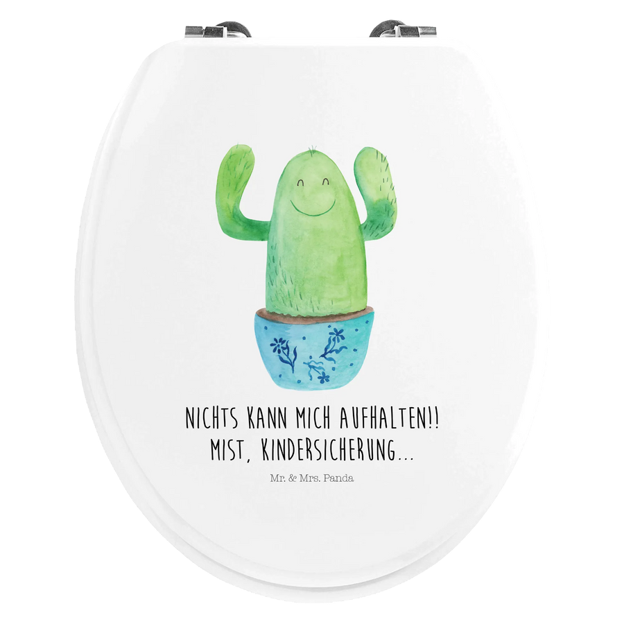 Motiv WC Sitz Kaktus Happy - mit Spruch - Hartfaser Holzkern Weiß - Weiß