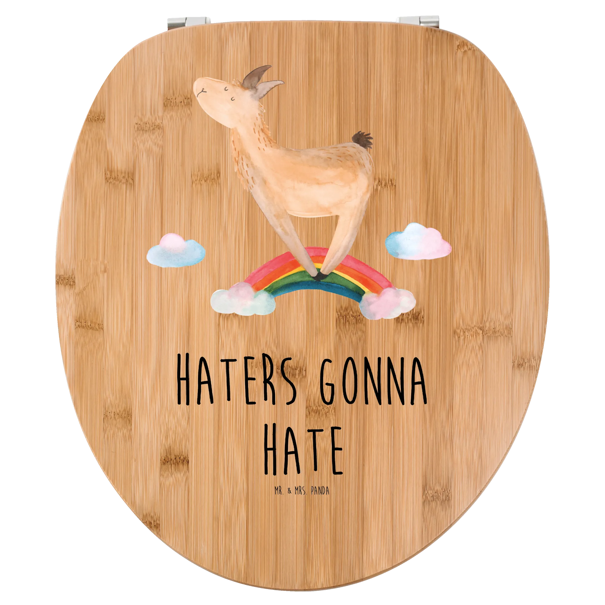 Motiv WC Sitz Lama Regenbogen - mit Spruch - Bambus - Transparent