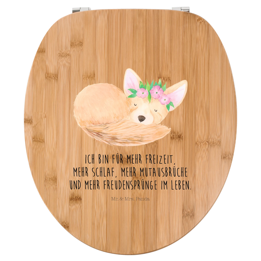 Motiv WC Sitz Wüstenfuchs Blumenkranz - mit Spruch - Bambus - Transparent