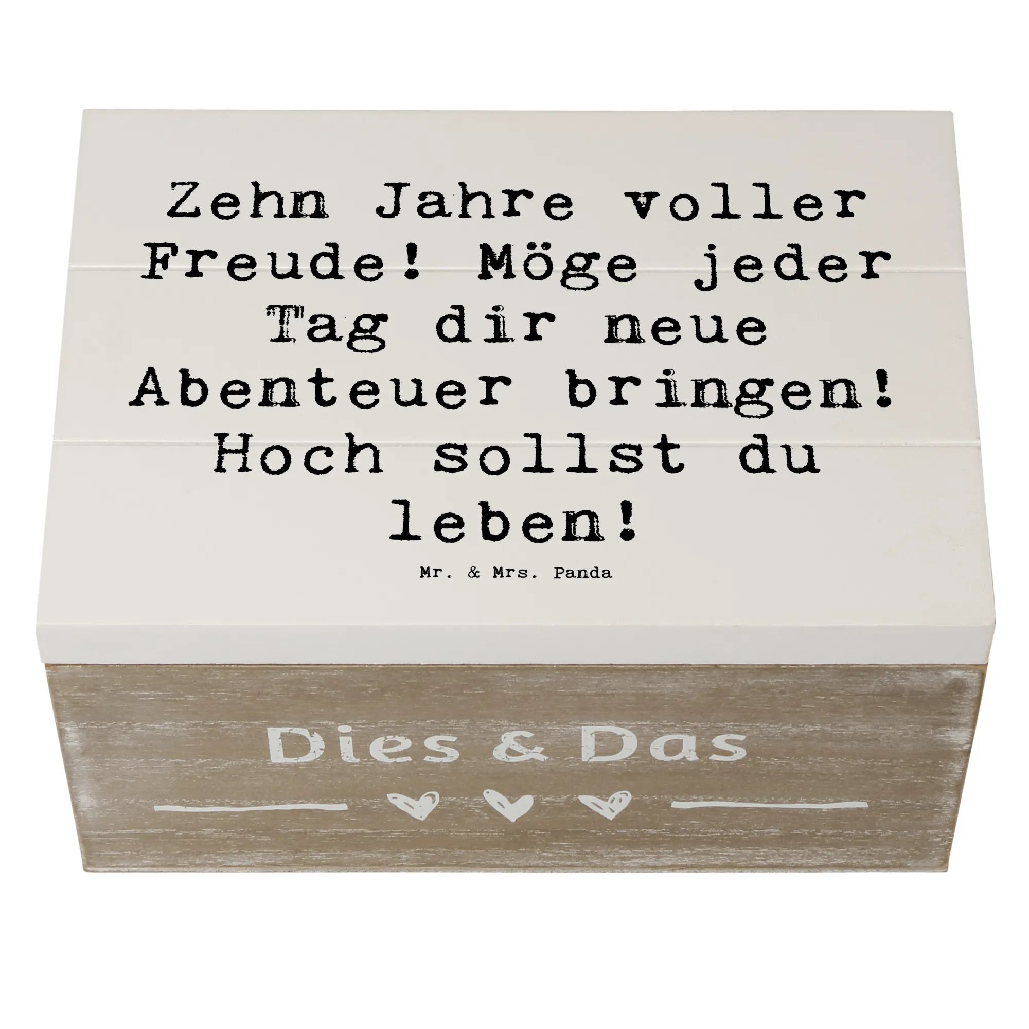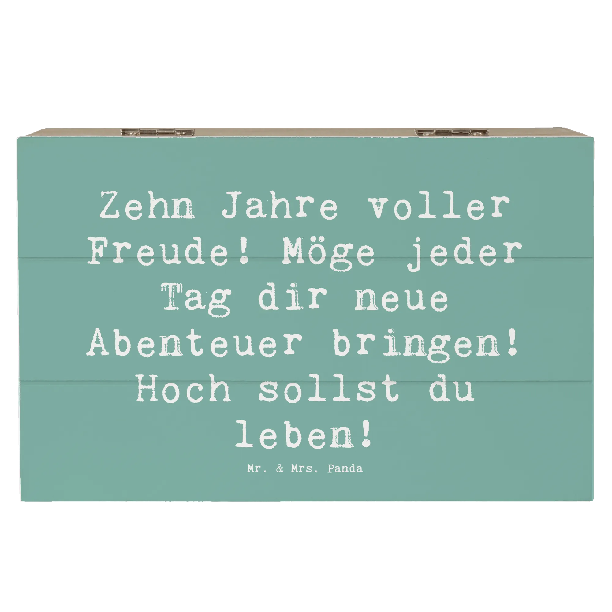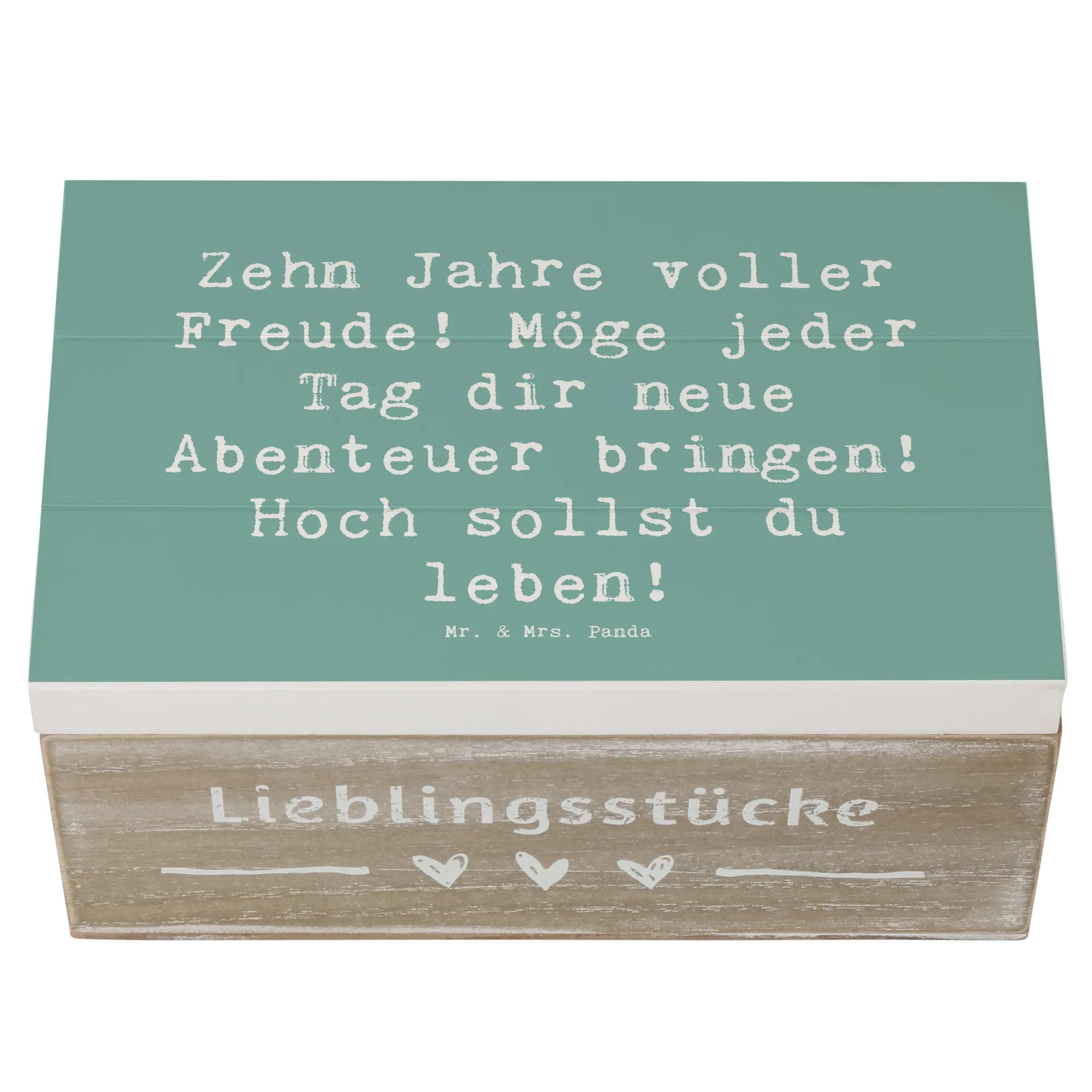 Die perfekte Holzkiste zum 10. Geburtstag ist nicht nur ein schönes Geschenk, sondern auch eine wunderbare Aufbewahrungsmöglichkeit für all die besonderen Schätze, die das Leben bereithält. Diese Erinnerungskiste von Mr. & Mrs. Panda ist mit dem liebevollen Slogan "Zehn Jahre voller Freude! Möge jeder Tag dir neue Abenteuer bringen! Hoch sollst du leben!" gestaltet und bringt mit ihrer maritimen Farbgebung sofort gute Laune.