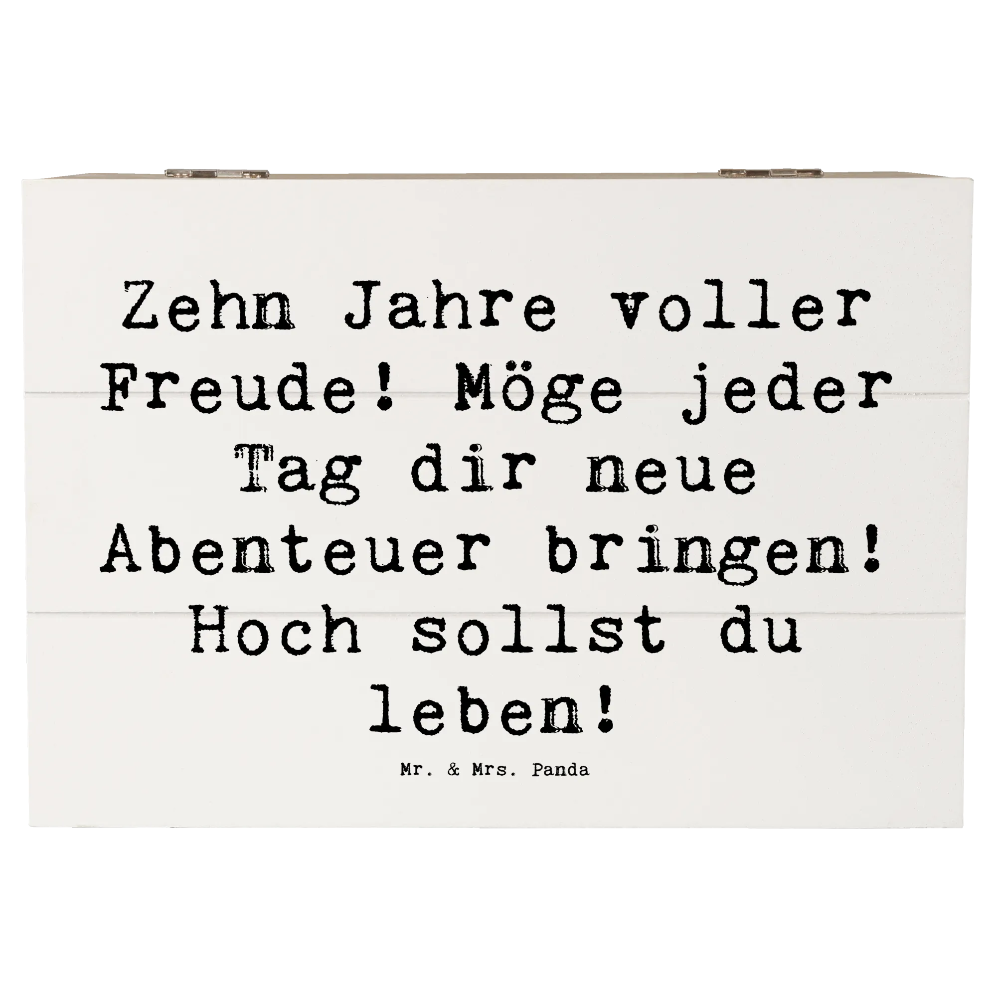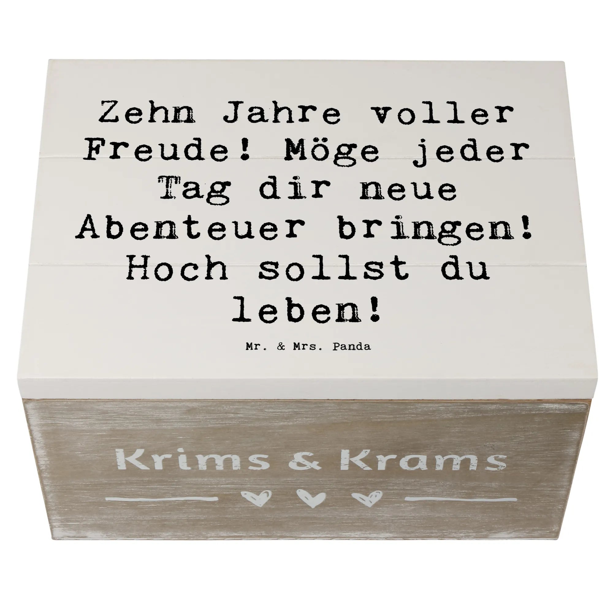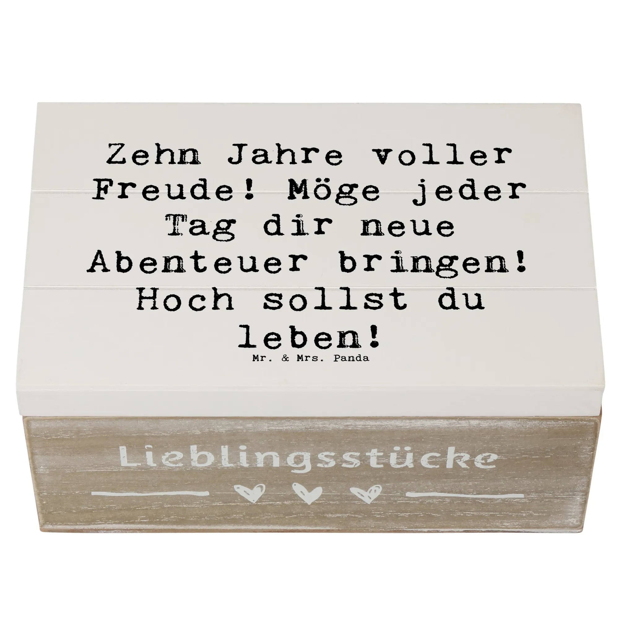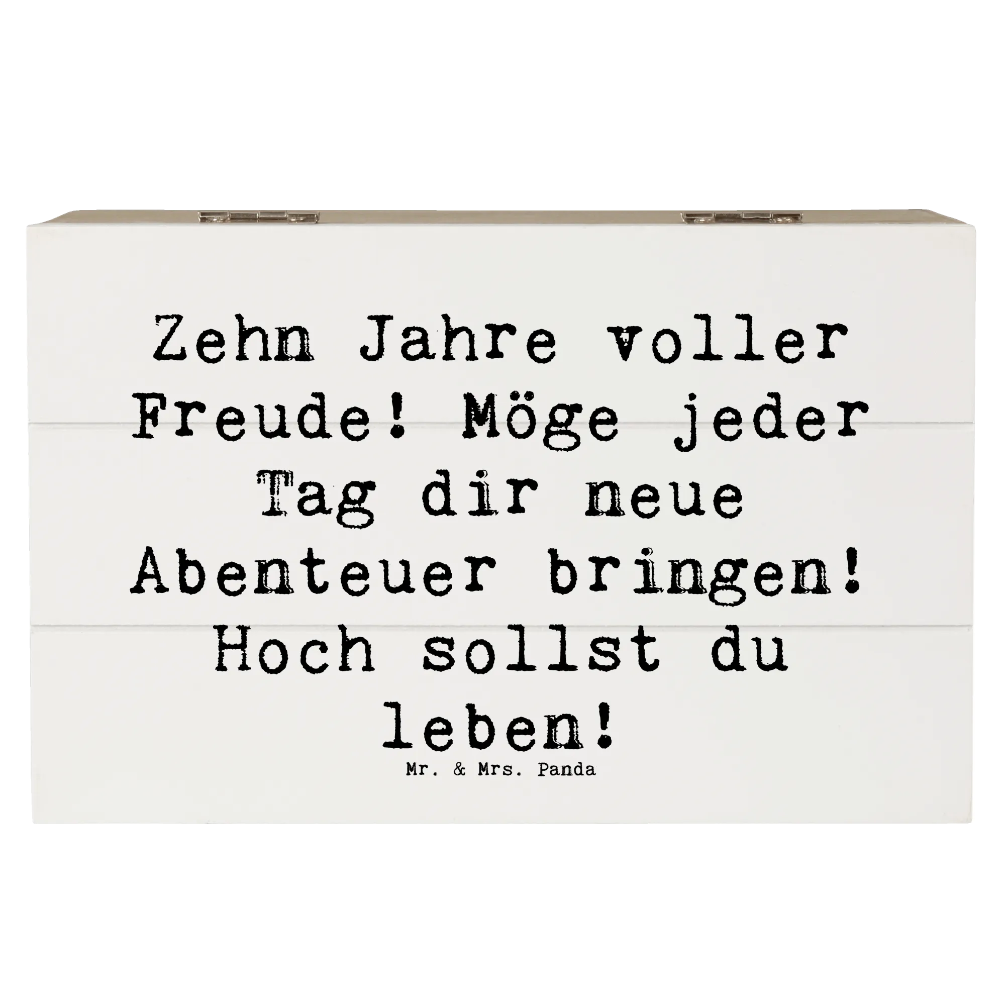 Die perfekte Holzkiste zum 10. Geburtstag ist nicht nur ein schönes Geschenk, sondern auch eine wunderbare Aufbewahrungsmöglichkeit für all die besonderen Schätze, die das Leben bereithält. Diese Erinnerungskiste von Mr. & Mrs. Panda ist mit dem liebevollen Slogan "Zehn Jahre voller Freude! Möge jeder Tag dir neue Abenteuer bringen! Hoch sollst du leben!" gestaltet und bringt mit ihrer maritimen Farbgebung sofort gute Laune.