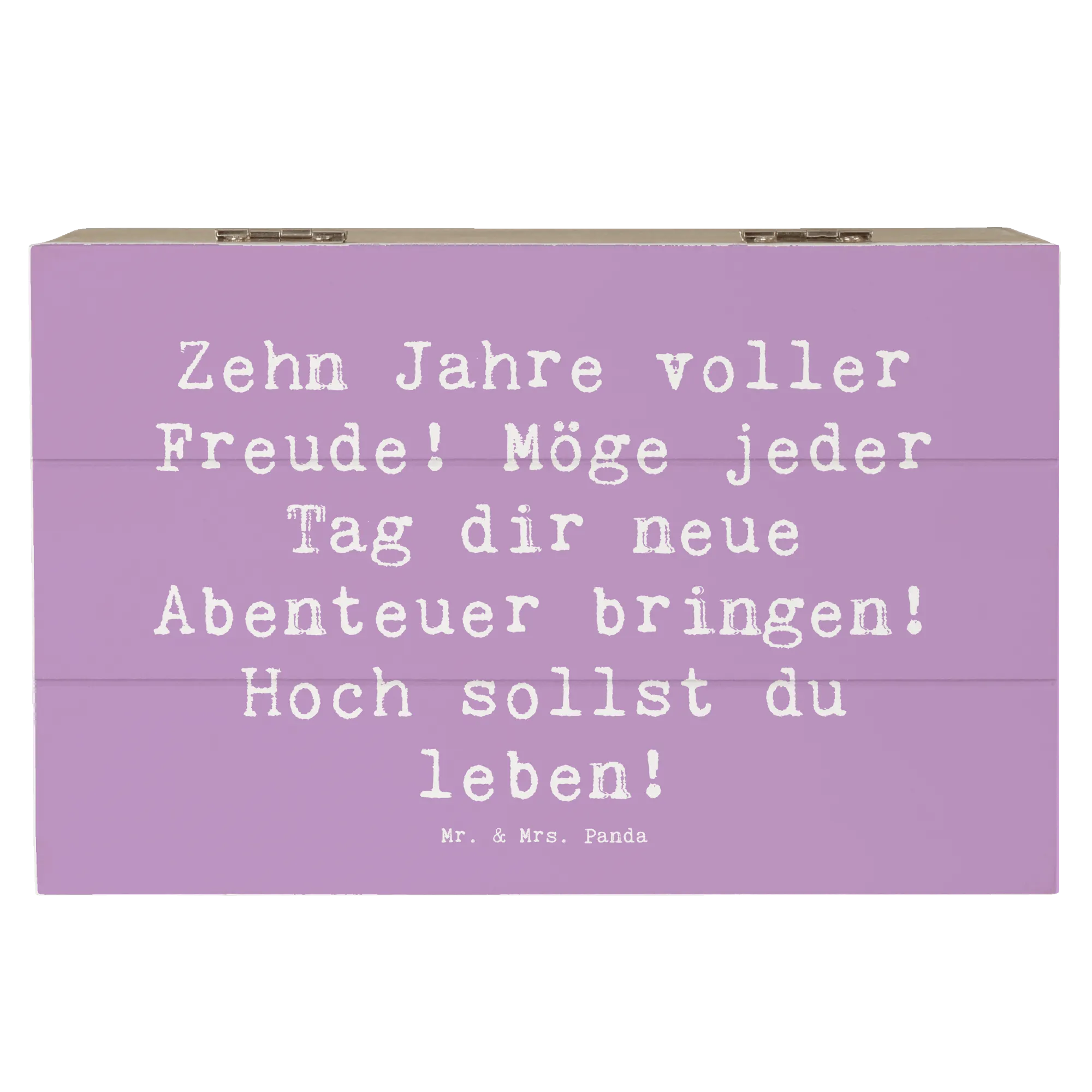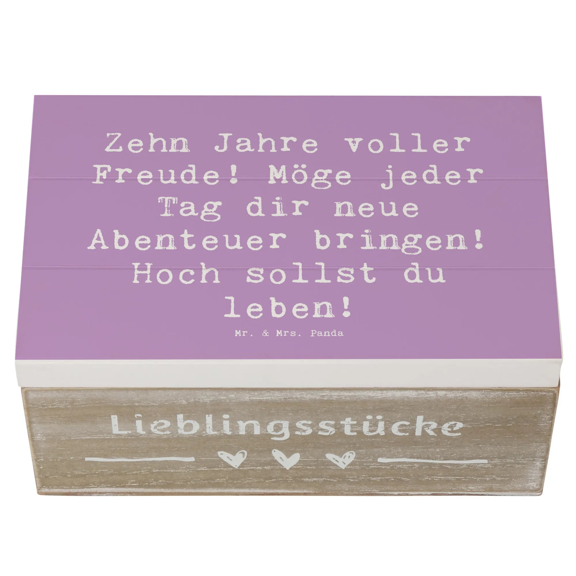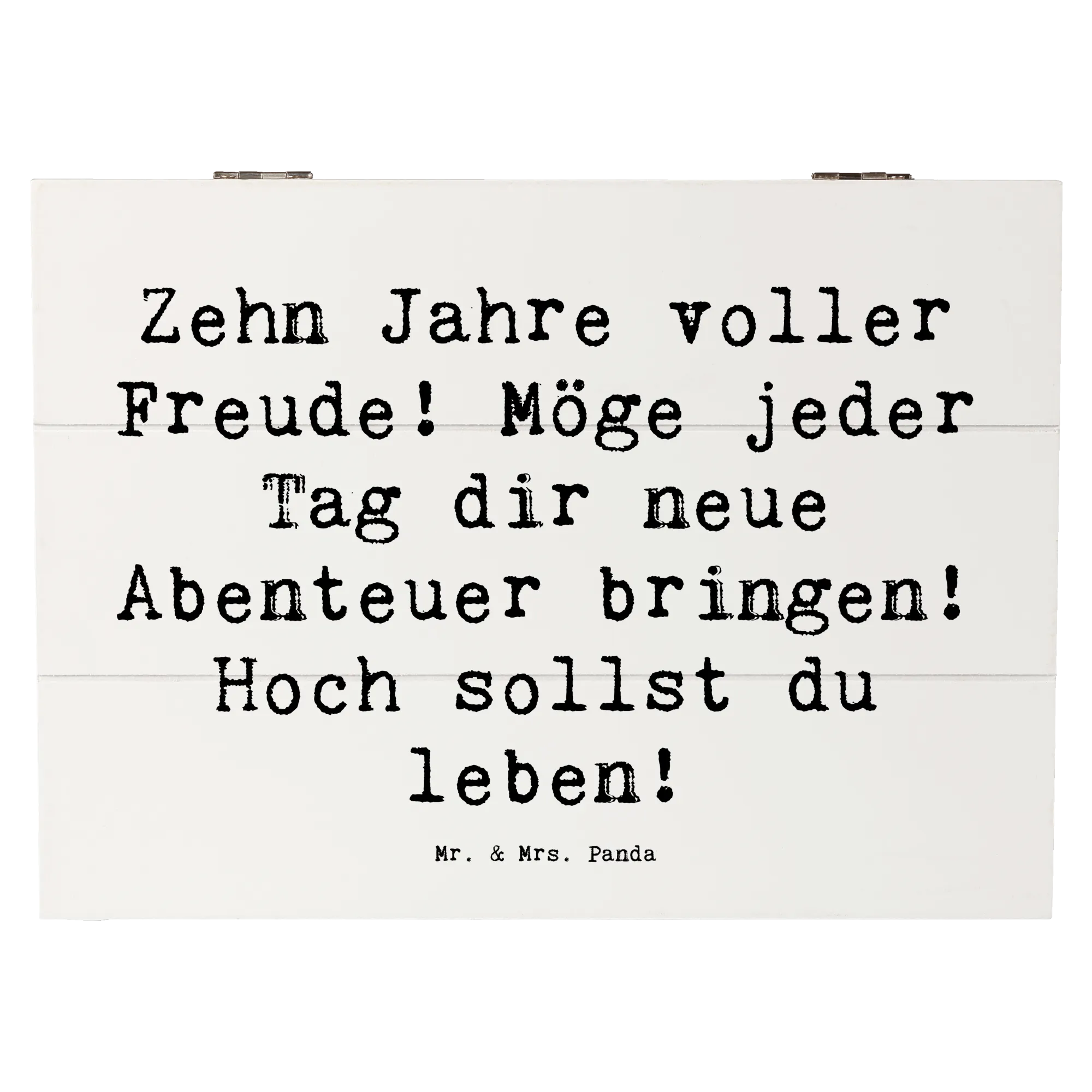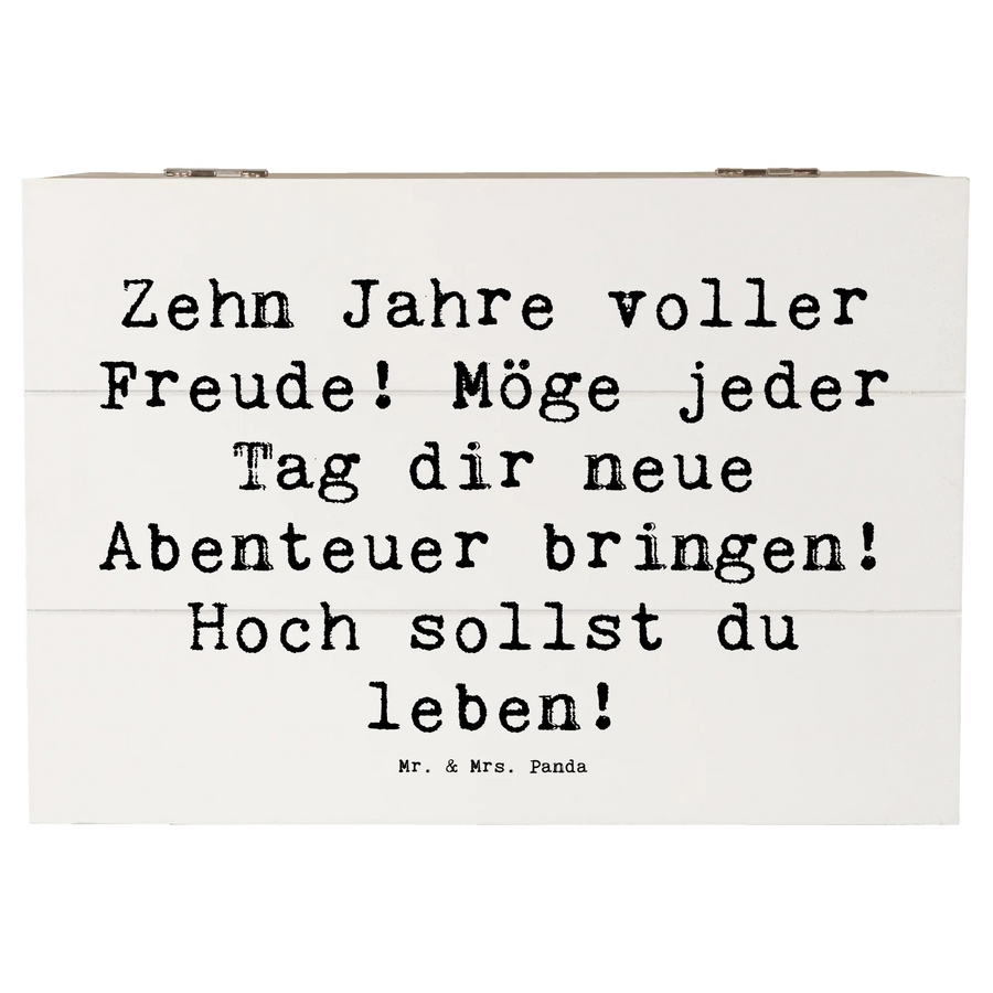 Die wunderschöne Holzkiste zum 10. Geburtstag von Mr. & Mrs. Panda ist das perfekte Geschenk, um die kleinen und großen Schätze eines besonderen Lebensjahres aufzubewahren! Mit dem liebevollen Slogan "Zehn Jahre voller Freude! Möge jeder Tag dir neue Abenteuer bringen! Hoch sollst du leben!" wird diese Kiste nicht nur zur Aufbewahrung, sondern auch zu einem schönen Erinnerungsstück, das dein Kind immer begleiten wird.