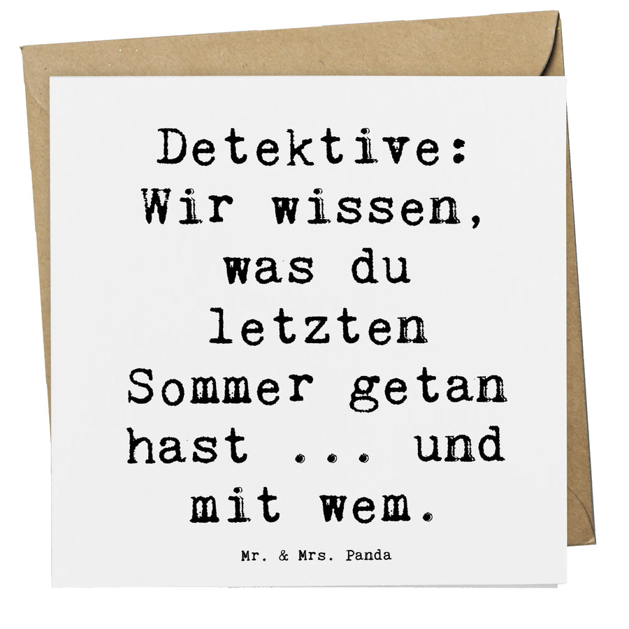 Entdecke die Deluxe Karte „Detektiv“ von Mr. & Mrs. Panda – eine liebevoll gestaltete, hochwertige Grußkarte aus unserer Berufe-Kollektion. Auf der Vorderseite steht der freche Spruch: „Detektive: Wir wissen, was du letzten Sommer getan hast ... und mit wem.“ und sorgt garantiert für Lacher bei Geburtstagen, Hochzeiten oder als originelle Einladungskarte. 🎉