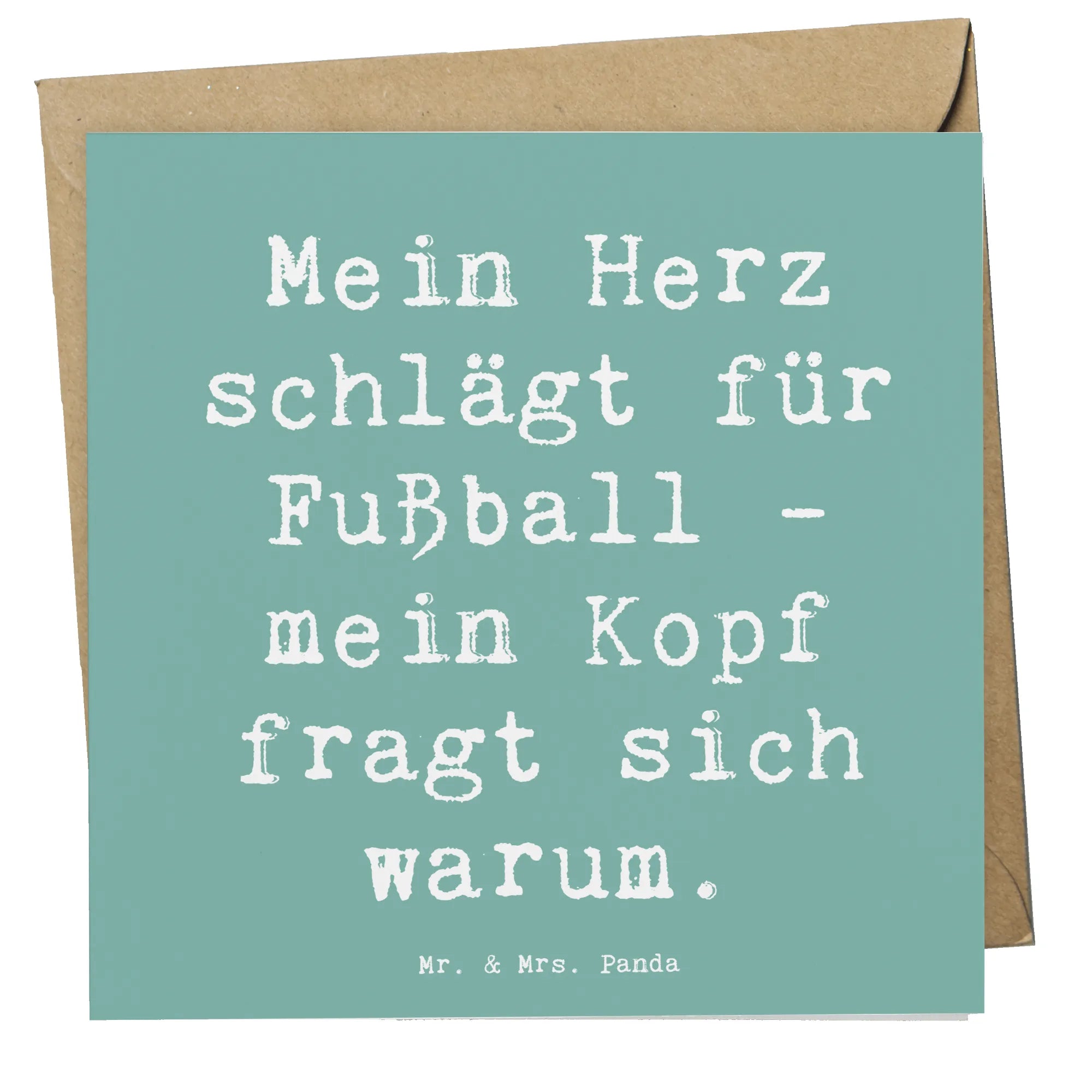 Die Deluxe Karte 'Mein Herz schlägt für Fußball - mein Kopf fragt sich warum' von Mr. & Mrs. Panda ist das perfekte Geschenk für alle Fußballbegeisterten! Egal ob zum Geburtstag, zur Hochzeit oder einfach nur, um einem lieben Menschen eine Freude zu machen – diese hochwertige Klappkarte wird garantiert für ein Lächeln sorgen.