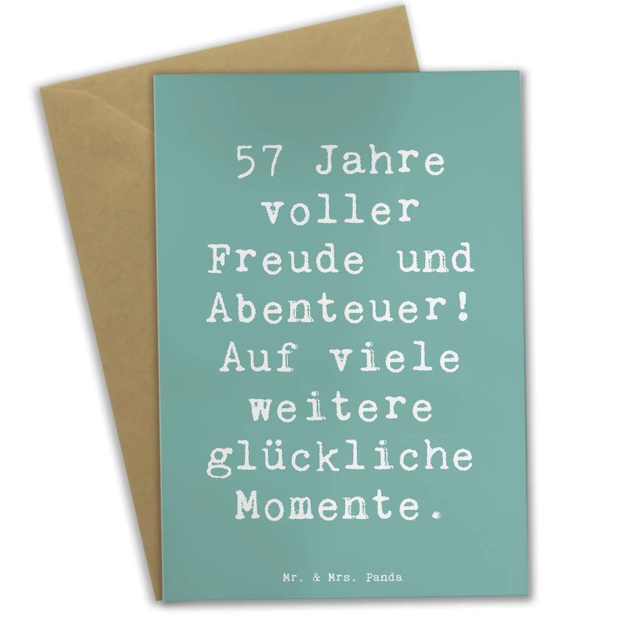Die wunderschöne Grußkarte zum 57. Geburtstag von Mr. & Mrs. Panda ist das perfekte Geschenk für jeden, der diesen besonderen Tag gebührend feiern möchte. Mit dem bezaubernden Spruch "57 Jahre voller Freude und Abenteuer! Auf viele weitere glückliche Momente." bringt diese Karte nicht nur Freude, sondern auch einen Hauch von Nostalgie und Dankbarkeit für die letzten sieben Jahrzehnte.