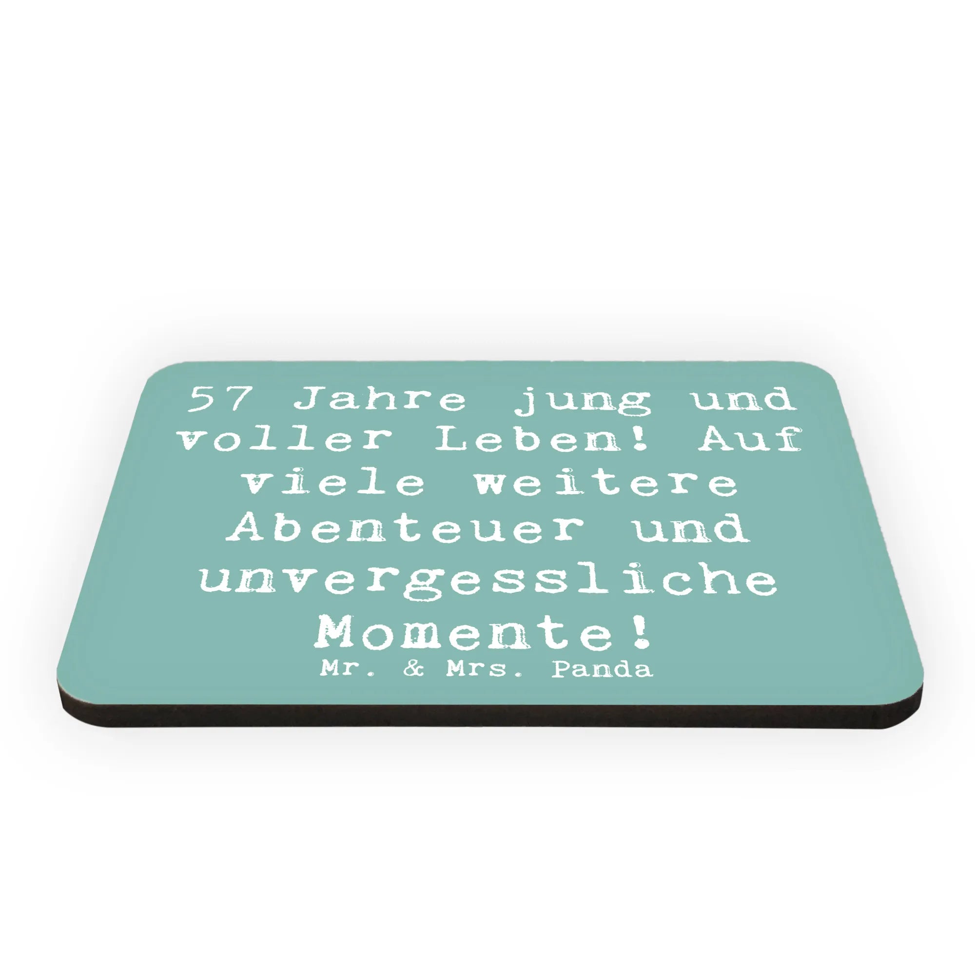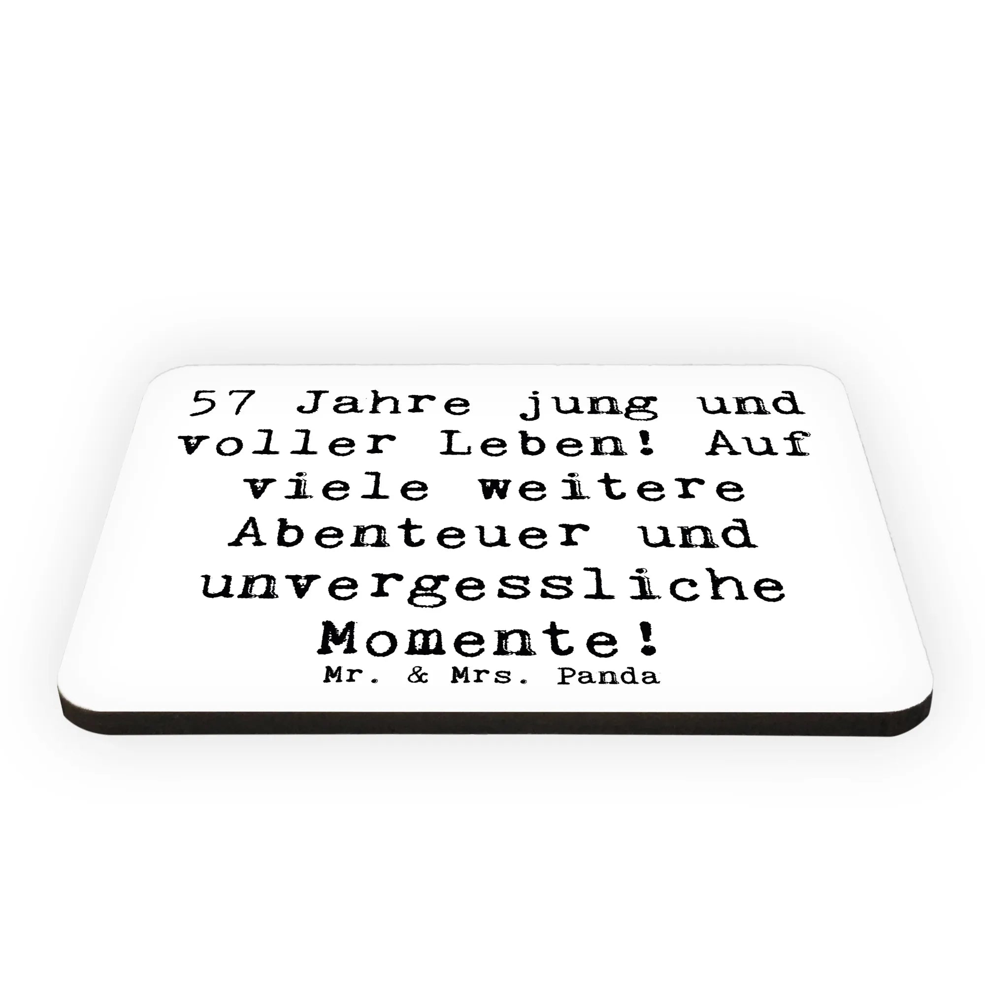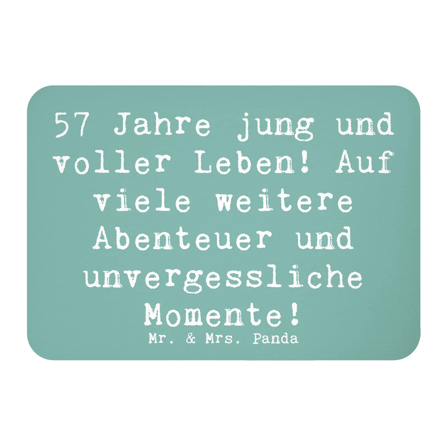 Suchst du nach einem ganz besonderen Geschenk zum 57. Geburtstag? Dann haben wir mit unserem schönen Kühlschrankmagnet "57 Jahre jung und voller Leben! Auf viele weitere Abenteuer und unvergessliche Momente!" von Mr. & Mrs. Panda genau das richtige für dich!