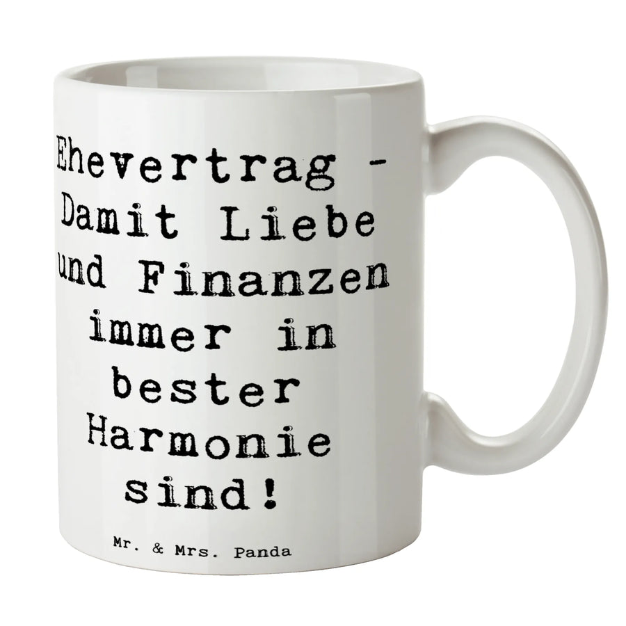 Du suchst nach dem perfekten Geschenk für frisch vermählte Paare oder diejenigen, die es bald werden? Die wunderschöne Kaffeetasse "Ehevertrag - Damit Liebe und Finanzen immer in bester Harmonie sind!" von Mr. & Mrs. Panda ist genau das Richtige für jeden Hochzeitsanlass!