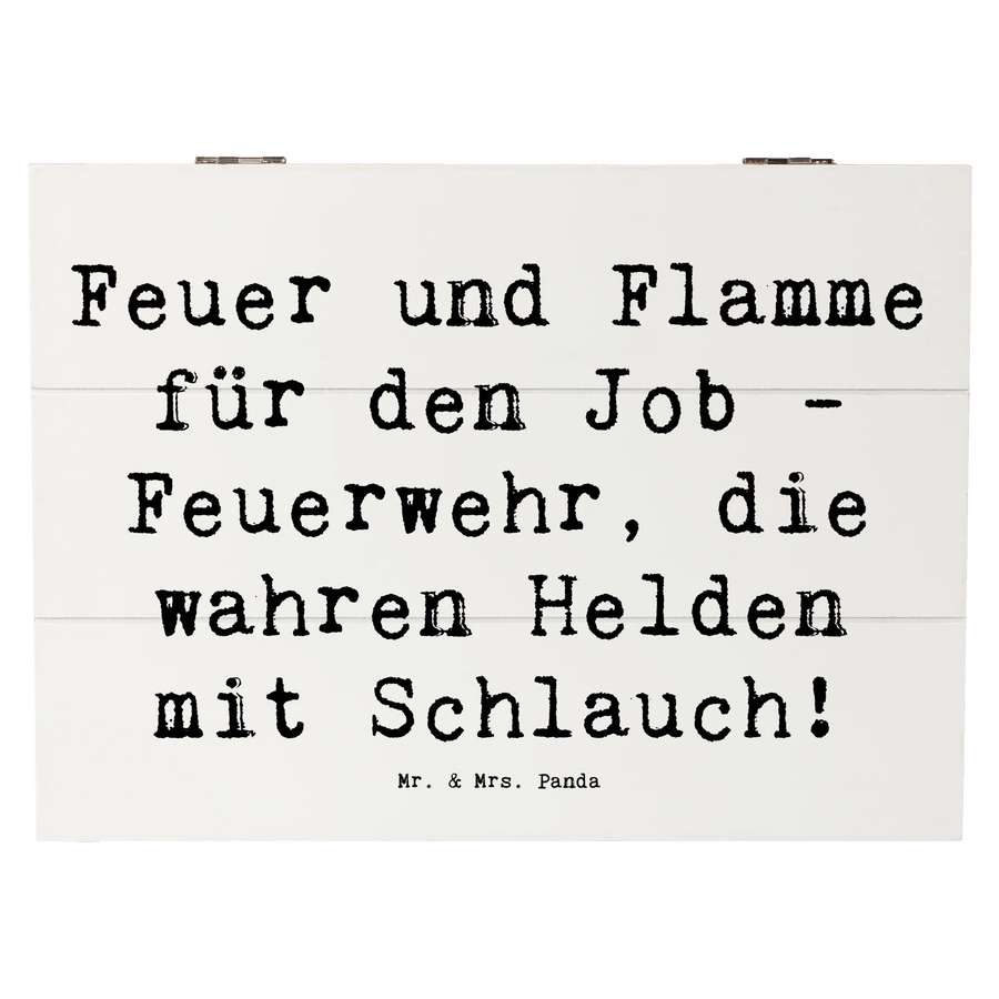 Die wunderschöne Holzkiste "Feuerwehrmann" von Mr. & Mrs. Panda ist das perfekte Geschenk für jeden Feuerwehrhelden in Deinem Leben! Mit dem liebevoll gestalteten Motiv und dem Spruch "Feuer und Flamme für den Job - Feuerwehr, die wahren Helden mit Schlauch!" ist diese Kiste nicht nur ein Blickfang, sondern auch eine wertvolle Erinnerungsbox.