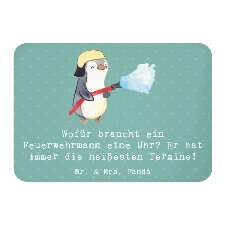 Der Kühlschrankmagnet Feuerwehrmann von Mr. & Mrs. Panda ist das perfekte Geschenk für Feuerwehrleute und ihre Angehörigen. Mit dem charmanten Slogan "Wofür braucht ein Feuerwehrmann eine Uhr? Er hat immer die heißesten Termine!" bringt dieser Magnet ein Lächeln in jede Küche.