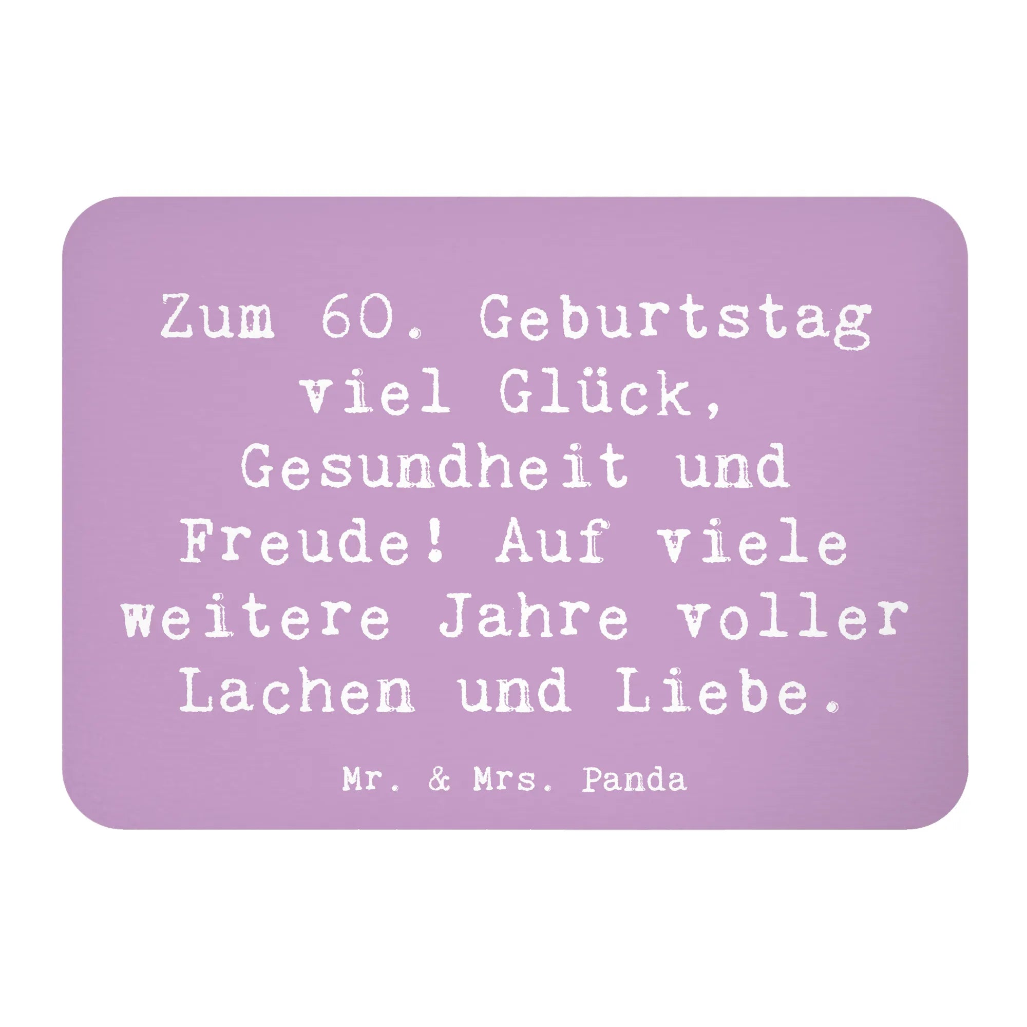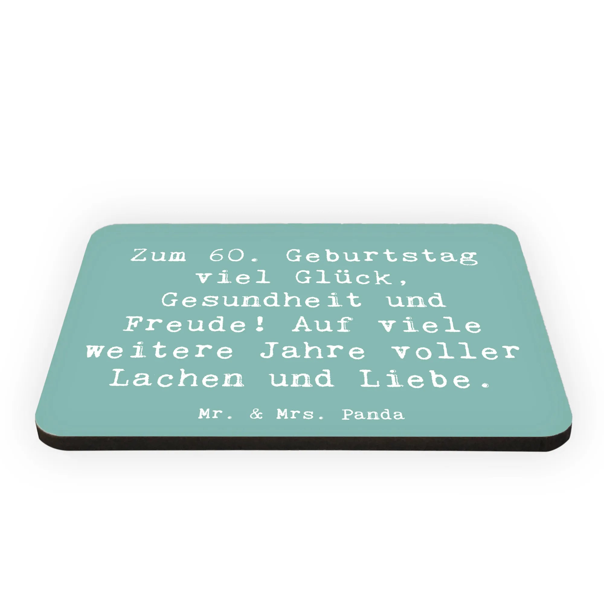 Der Magnet "Zum 60. Geburtstag viel Glück, Gesundheit und Freude! Auf viele weitere Jahre voller Lachen und Liebe." von Mr. & Mrs. Panda ist das perfekte Geschenk für den besonderen Menschen in deinem Leben, der seinen 60. Geburtstag feiert. Dieser fabelhafte Magnet, hergestellt aus hochwertigem MDF-Holz, bringt nicht nur Farbe in jede Küche, sondern verbreitet auch sofort gute Laune!