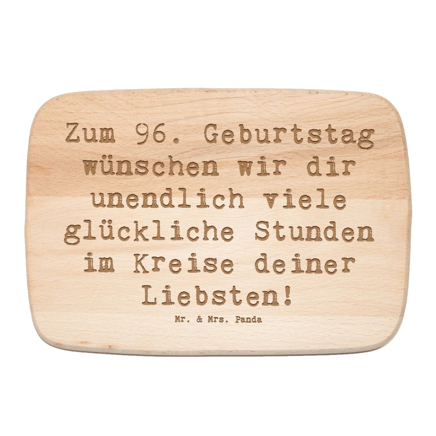 Das Frühstücksbrett von Mr. & Mrs. Panda zum 96. Geburtstag ist ein ganz besonderes Geschenk für alle, die diesen besonderen Tag feiern. Mit dem liebevollen Spruch "Zum 96. Geburtstag wünschen wir dir unendlich viele glückliche Stunden im Kreise deiner Liebsten!" wird jedes Frühstück zu einem Fest. Das in robustem Birkenholz gefertigte Brett ist nicht nur funktional, sondern auch ein echter Blickfang in deiner Küche. Mit den Maßen 130 mm x 230 mm x 130 mm bietet es ausreichend Platz für leckere Brötchen, frisches Obst oder andere Köstlichkeiten. Die langlebige Lasergravur sorgt dafür, dass der Spruch auch nach vielen Frühstücken noch gut aussieht.