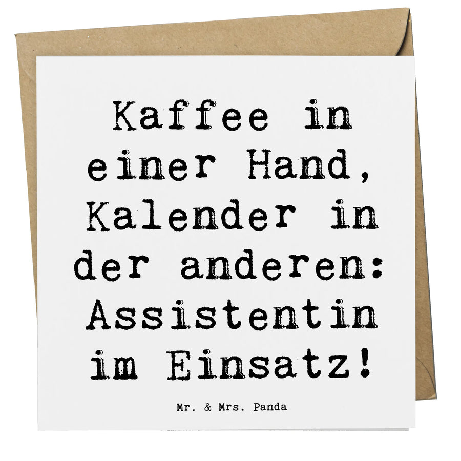 Deluxe Karte Spruch Kaffee in einer Hand, Kalender in der anderen: Assistentin im Einsatz! - Weiß