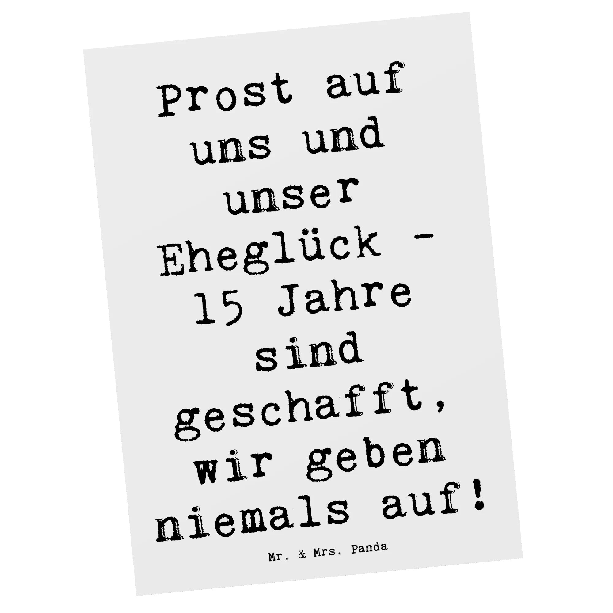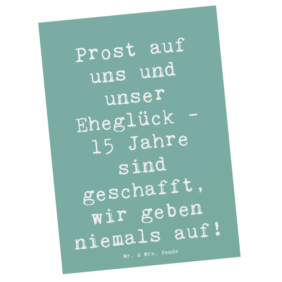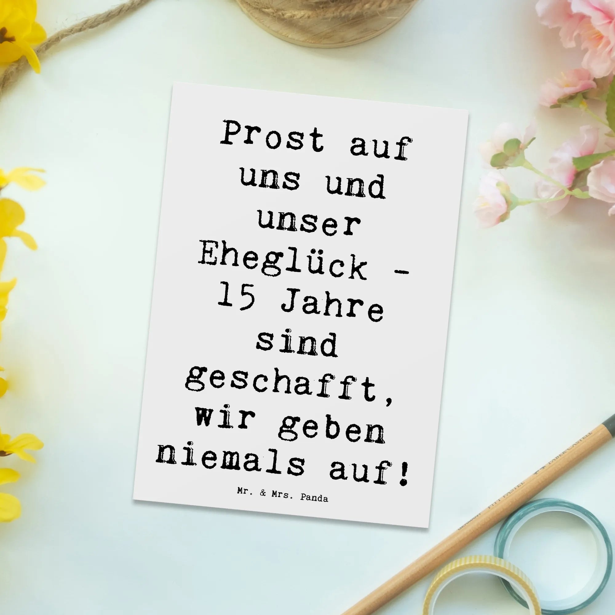 Du bist auf der Suche nach dem perfekten Geschenk zum 15. Hochzeitstag? Unsere bezaubernde Postkarte "15. Hochzeitstag Gläserne Hochzeit" von Mr. & Mrs. Panda ist genau das Richtige für dich! Diese einzigartige Postkarte ist mit dem liebevollen Spruch "Prost auf uns und unser Eheglück - 15 Jahre sind geschafft, wir geben niemals auf!" bedruckt und bringt die Liebe und Freude der gemeinsamen Jahre perfekt auf den Punkt.
