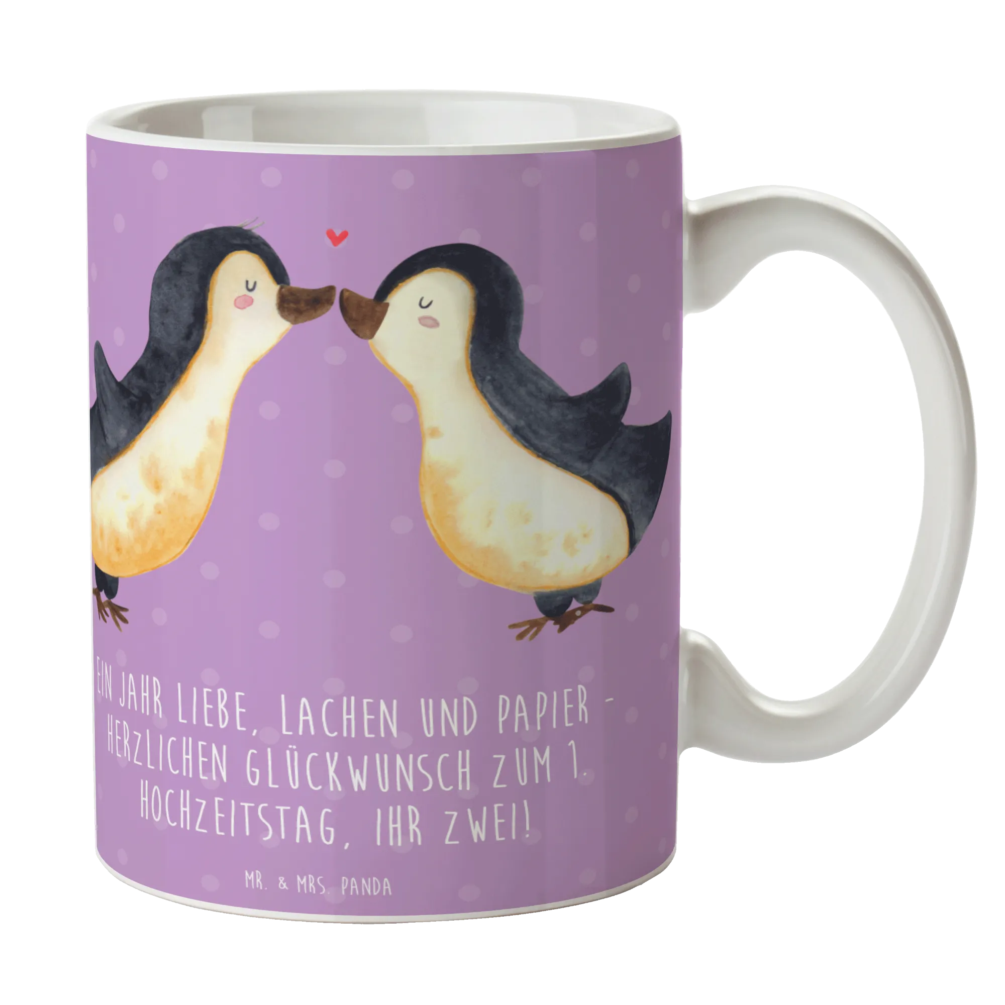 Du suchst ein Hochzeitsgeschenk oder ein Geschenk zur Papierhochzeit? Diese Tasse ist das perfekte Accessoire für den schönsten Tag deiner Freunde. Verschenke Liebe und Erinnerungen mit dieser besonderen Tasse und mache den ersten Hochzeitstag zu etwas ganz Einzigartigem! Entdecke auch die gesamte Hochzeitskollektion von Mr. & Mrs. Panda und finde weitere liebevolle Geschenke für jeden Anlass.