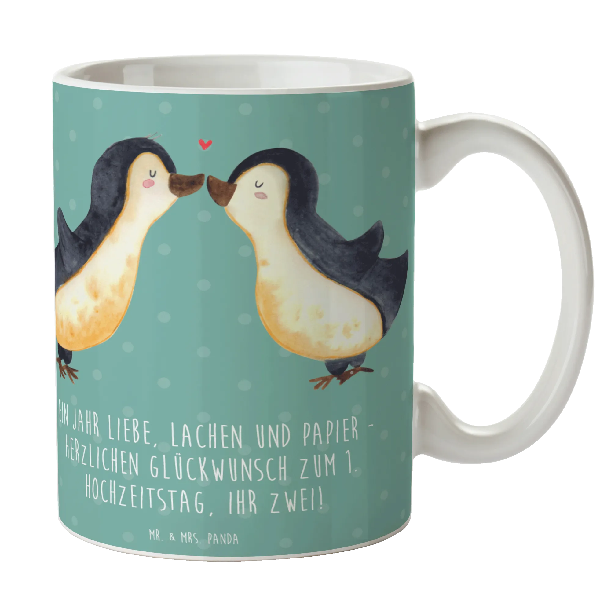 Die perfekte Tasse für den 1. Hochzeitstag ist hier! Diese wunderschöne spülmaschinenfeste Keramiktasse von Mr. & Mrs. Panda bringt nicht nur ein Lächeln ins Gesicht, sondern feiert auch den ersten Meilenstein in einer gemeinsamen Reise voller Liebe und Lachen. Mit dem bezaubernden Spruch 'Ein Jahr Liebe, Lachen und Papier - Herzlichen Glückwunsch zum 1. Hochzeitstag, ihr Zwei!' ist sie ein liebevolles Geschenk für alle frisch Verheirateten oder für Paare, die diesen besonderen Tag feiern möchten.