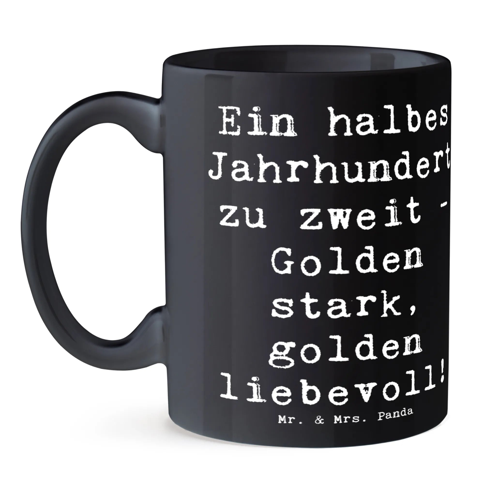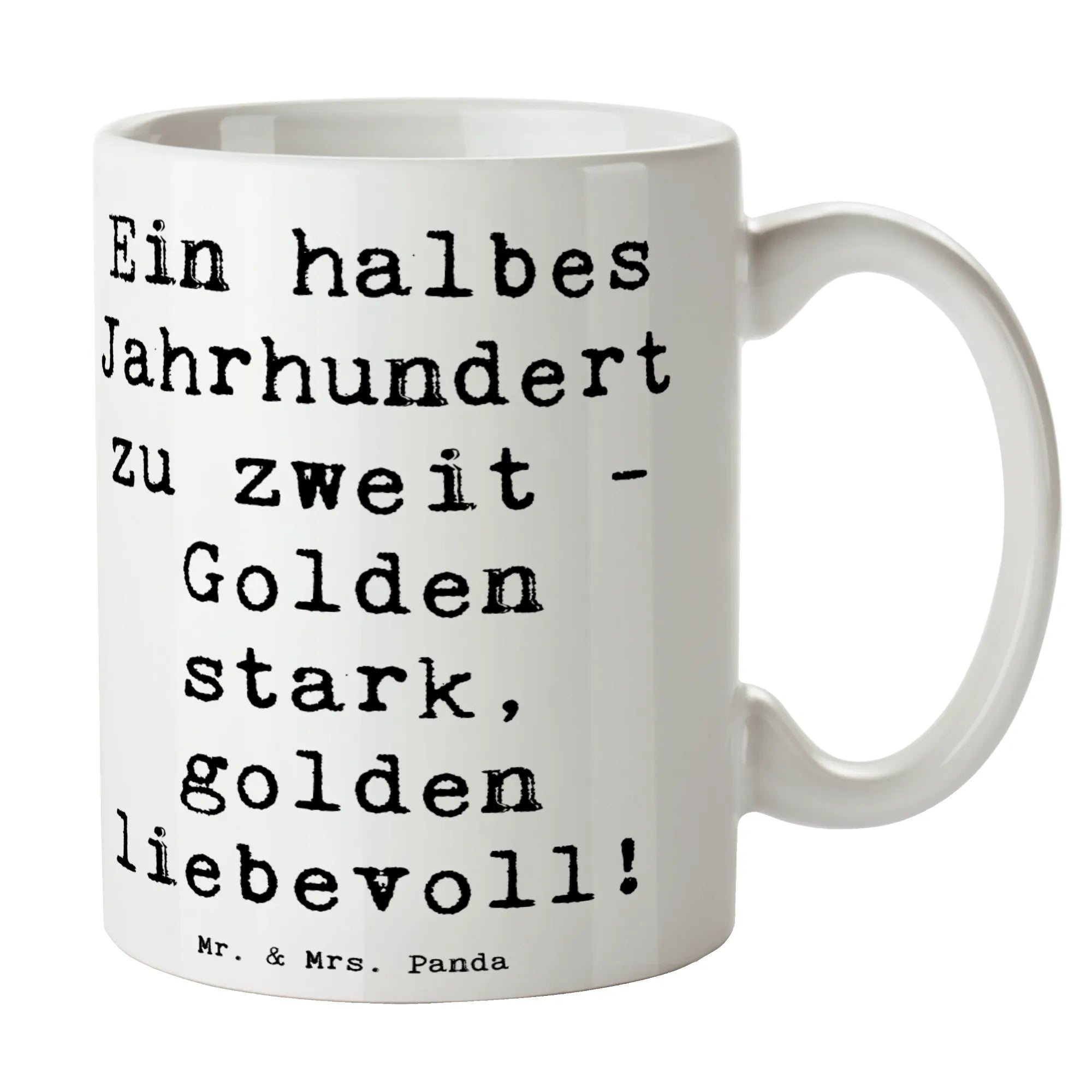 Du suchst nach dem perfekten Geschenk zum 50. Hochzeitstag? Unsere wundervolle Tasse „50. Hochzeitstag Goldene Hochzeit“ von Mr. & Mrs. Panda ist die ideale Möglichkeit, die Liebe zu feiern! Diese speziell gestaltete Keramiktasse mit dem süßen Spruch „Ein halbes Jahrhundert zu zweit - Golden stark, golden liebevoll!“ ist nicht nur ein wunderbares Accessoire, sondern auch ein Ausdruck großer Zuneigung.