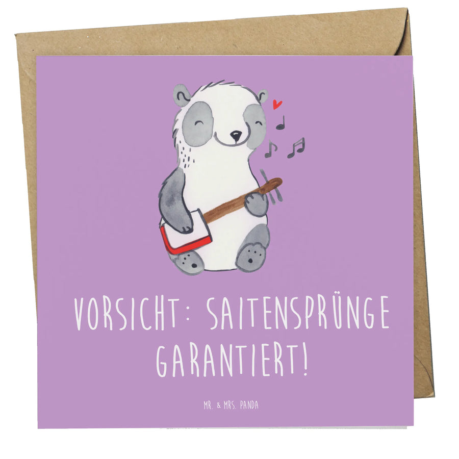 Hol dir diese hochwertige Grußkarte aus der exklusiven Kollektion "Musizieren & Instrumente" von Mr. & Mrs. Panda und erfreue dich an dem Lächeln, das sie hervorrufen wird. Zeige deinen Liebsten, wie viel sie dir bedeuten, mit einer Karte, die nicht nur Worte, sondern auch Musik spricht! Lass die Saiten einfach los und verschenke Freude – denn mit der richtigen Karte wird jeder Anlass zum besonderen Erlebnis!