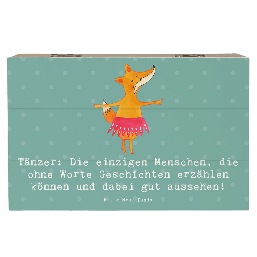 Entdecke die wunderschöne Holzkiste von Mr. & Mrs. Panda, perfekt für alle Tanzliebhaber! Mit dem liebevoll gestalteten Motiv "Tänzer: Die einzigen Menschen, die ohne Worte Geschichten erzählen können und dabei gut aussehen!" wird diese Kiste zu einem Highlight in jedem Raum.