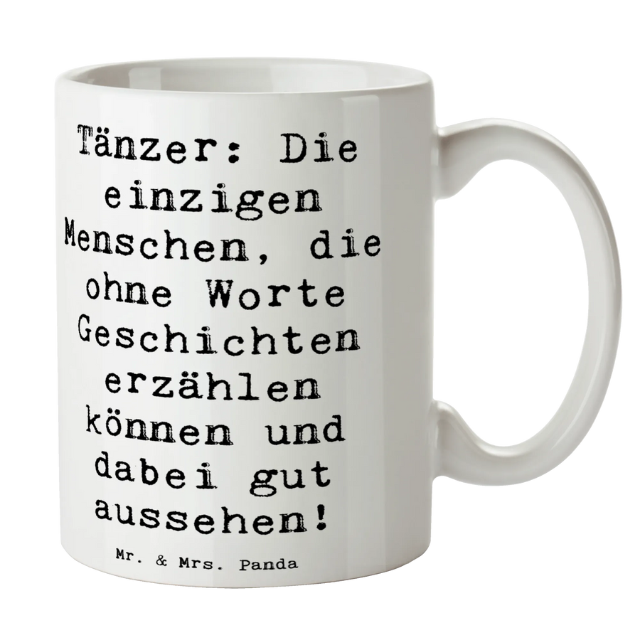 Diese zauberhafte Tasse aus unserer Sportarten-Kollektion ist das perfekte Geschenk für alle Tänzerinnen, Tänzer und Tanzbegeisterten. Der liebevoll gestaltete Spruch „Tänzer: Die einzigen Menschen, die ohne Worte Geschichten erzählen können und dabei gut aussehen!“ bringt Herz und Humor in jeden Morgen. Ob als Kaffeetasse, Teetasse oder Bürotasse – sie ist ein kleines Statement für die große Leidenschaft.