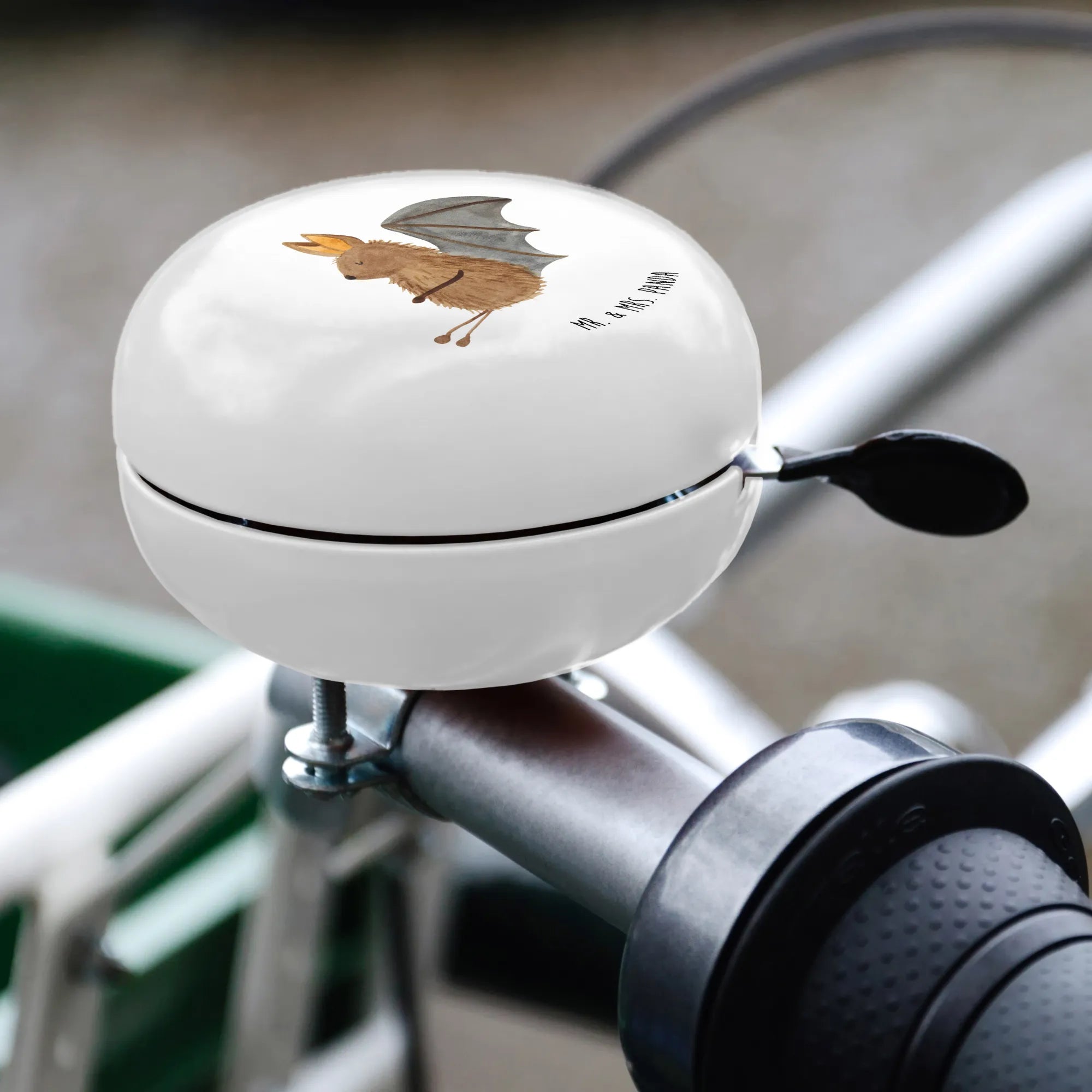 Bist du auf der Suche nach dem perfekten Geschenk für Fahrradliebhaber? Dann ist die XL Fahrradklingel mit dem süßen Motiv "Fledermaus sitzend" aus der Small World Kollektion von Mr. & Mrs. Panda genau das Richtige für dich! Diese hochwertige Klingel ist nicht nur funktional, sondern auch ein absoluter Blickfang. Die Fledermaus, die vergnügt auf der Glocke sitzt, bringt nicht nur Freude beim Radfahren, sondern auch ein Lächeln auf die Gesichter deiner Freunde oder Familie.