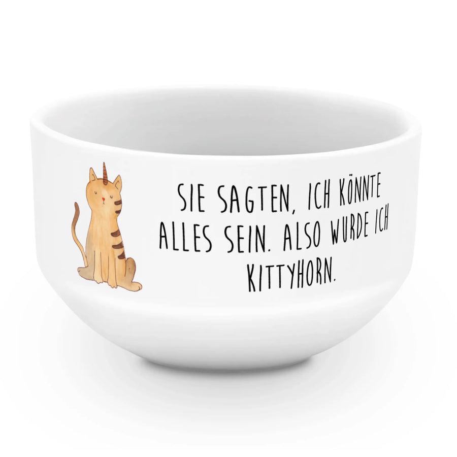 Das niedliche Motiv des Kittyhorns – eine süße Katze mit einem glitzernden Einhornhorn – wird mit dem witzigen Spruch „Sie sagten, ich könnte alles sein. Also wurde ich Kittyhorn.“ kombiniert und sorgt für gute Laune am Tisch. Die hochwertige Keramik sorgt dafür, dass die Farben strahlend bleiben und die Schüssel auch nach vielen Spülgängen im Geschirrspüler wie neu aussieht. Ein echter Hingucker auf jedem Frühstückstisch!