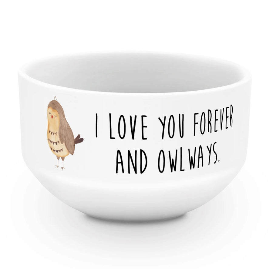 Die Müslischale Eule Zufrieden von Mr. & Mrs. Panda ist das perfekte Geschenk für Eulenliebhaber und alle, die ihre Morgenstunden mit einem Hauch von Freude beginnen möchten. Diese wunderschöne Müslischüssel ist nicht nur funktional, sondern kommt auch mit einem liebevollen Slogan: "I love you forever and owlways." Auf den ersten Blick wird dich die niedliche, zufrieden wirkende Eule mit ihren großen Augen verzaubern. Sie bringt eine Portion Gemütlichkeit und Freude in jeden Frühstücks-Moment, ob alleine oder gemeinsam mit der Familie.