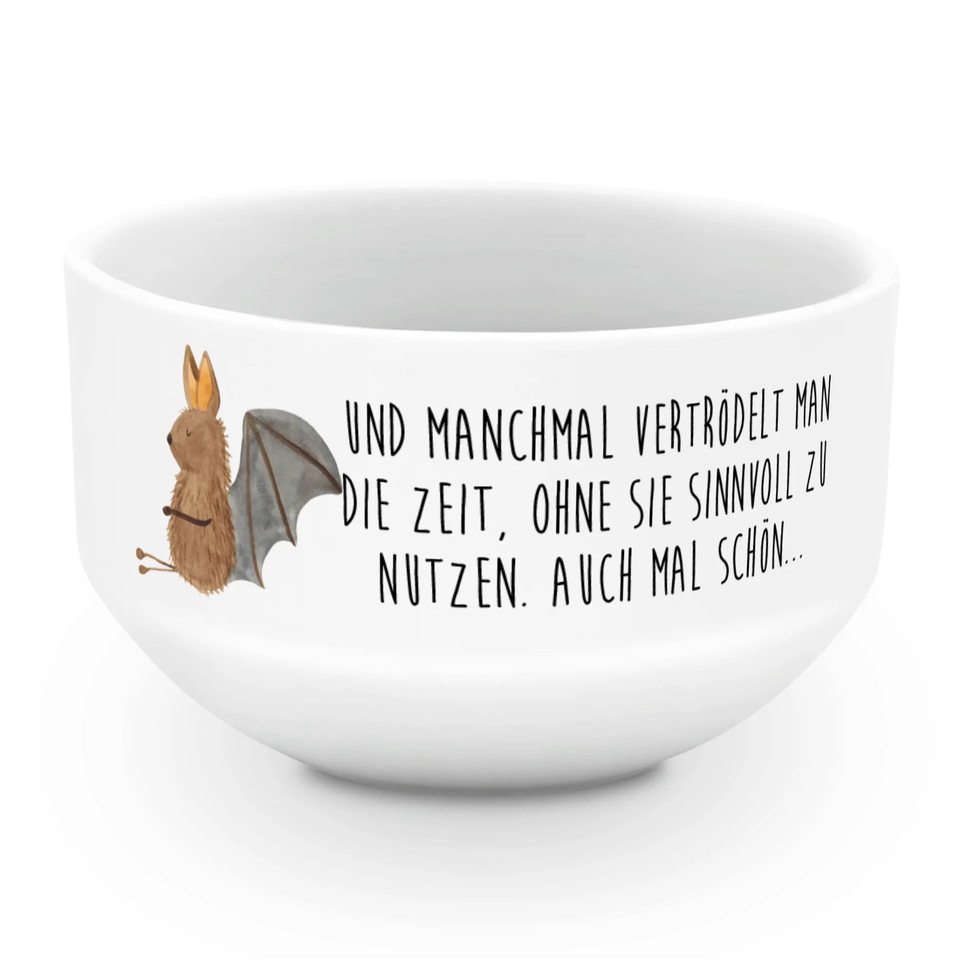Da die Müslischale aus hochwertiger Keramik besteht, empfehlen wir, sie von Hand zu spülen, um die Farbbrillanz und das Design zu bewahren. Hol dir die kleine Freude nach Hause und starte jeden Tag mit einem Lächeln, wenn du dein Müsli in dieser zauberhaften Müslischale genießt. Mit unserer Müslischale 'Fledermaus sitzend' wird jedes Frühstück zum besonderen Erlebnis!