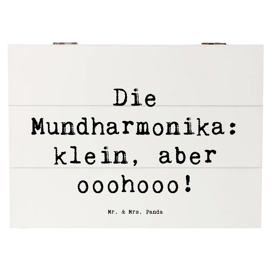 Entdecke die zauberhafte Holzkiste mit dem Motiv Mundharmonika von Mr. & Mrs. Panda! Diese liebevoll gestaltete Erinnerungskiste fasst all deine besonderen Momente und Schätze zusammen, sei es die erste Mundharmonika, die du erhalten hast, oder die schönsten Fotos deiner Kindheit. Diese Kiste ist nicht nur robust aus hochwertiger Holzfaser gefertigt, sondern auch ein echter Hingucker in deinem Leben oder dem eines geliebten Musikfreundes.