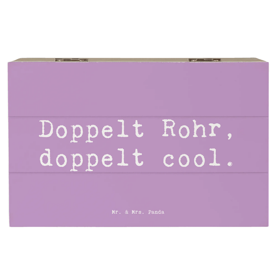 Die Holzkiste ist ideal als Dekokiste oder Aufbewahrungsbox, die Deine Erinnerungen stilvoll verwahrt. Ob für einen Musiker, einen Musikliebhaber oder auch für Kinder, die ein Instrument lernen möchten, wird diese Kiste das perfekte Geschenk sein. Sie trägt den charmanten Spruch "Doppelt Rohr, doppelt cool. " und zeigt damit die einzigartige Verbindung zur Musik und zu den Instrumenten.