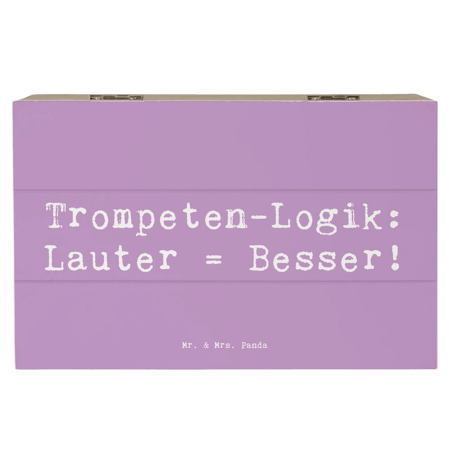 Die wunderschöne Holzkiste von Mr. & Mrs. Panda ist ein ganz besonderes Geschenk für Musikliebhaber und kleine Trompetenhelden! Mit einem fröhlichen Trompetenmotiv und dem witzigen Spruch "Trompeten-Logik: Lauter = Besser!" zaubert sie ein Lächeln auf jedes Gesicht.