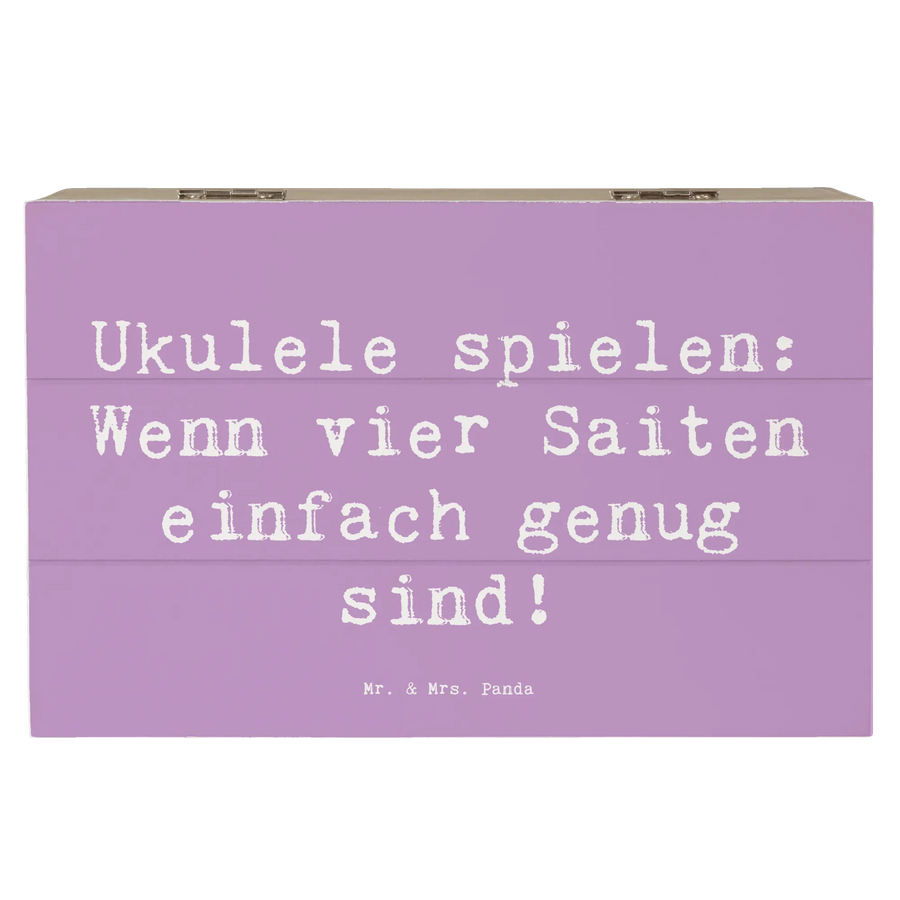 Eine wunderschöne Holzkiste von Mr. & Mrs. Panda, liebevoll bedruckt mit dem fröhlichen Ukulele-Motiv und dem Slogan „Ukulele spielen: Wenn vier Saiten einfach genug sind!“. Diese Erinnerungskiste ist das perfekte Geschenk für alle, die Musik, Sonne und kleine Schätze lieben.