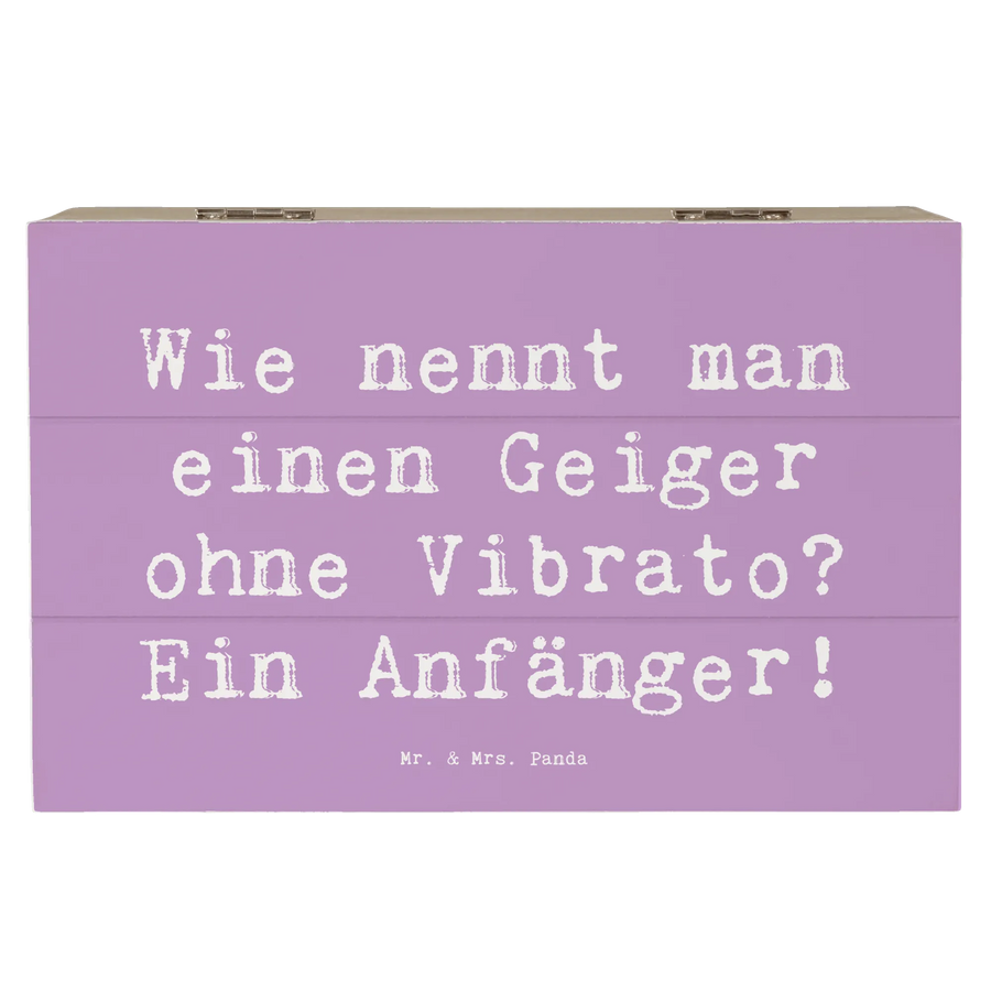Unsere Mr. & Mrs. Panda Holzkiste Violine ist die liebevolle Kombination aus Funktion und Humor. Mit dem frechen Spruch „Wie nennt man einen Geiger ohne Vibrato? Ein Anfänger!” auf dem Deckel und dem zarten Violin-Motiv wird diese Geschenkbox Holz sofort zum Lieblingsstück für alle, die Geige spielen oder Musik lieben.