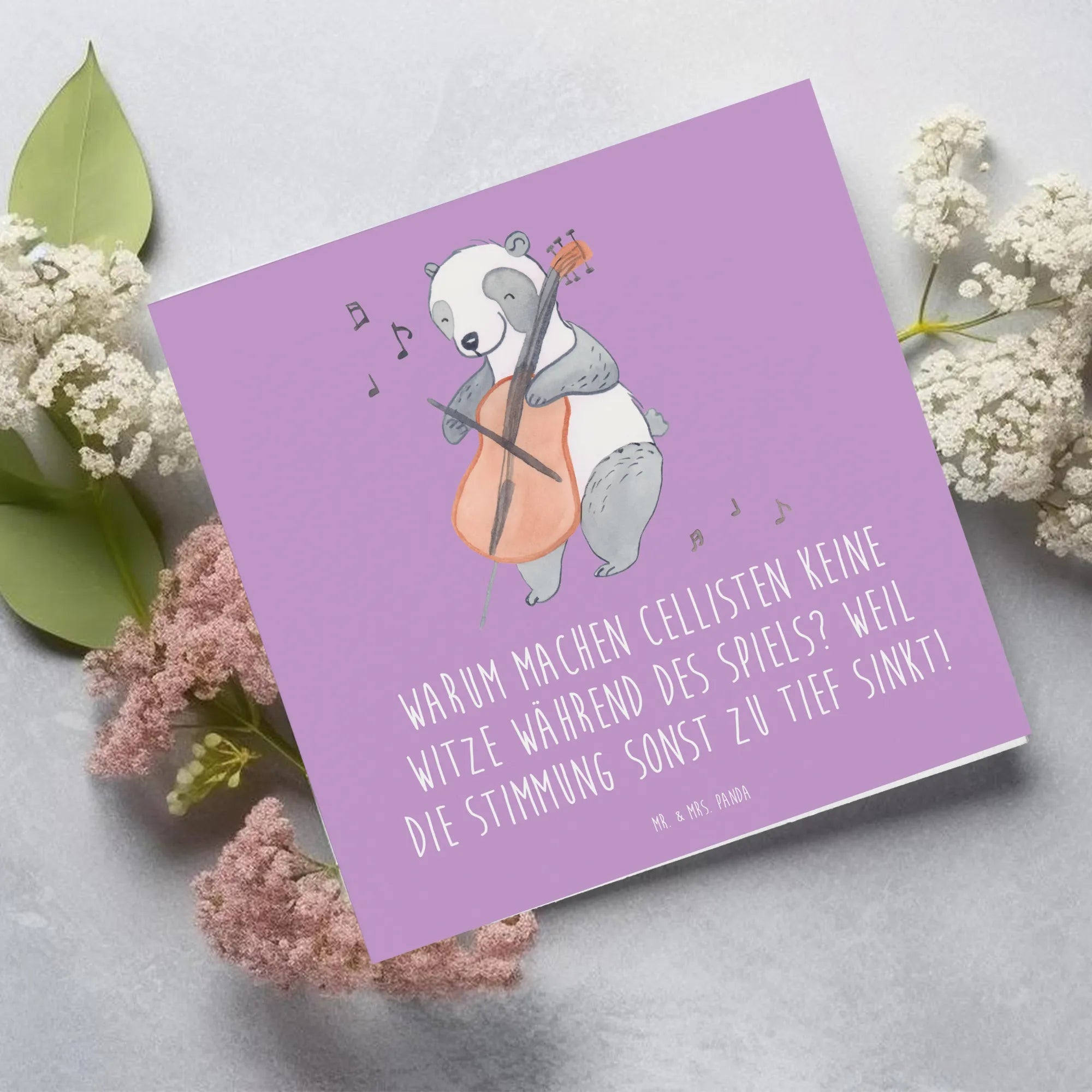 Entdecke die wunderbare Deluxe Karte mit dem Cello-Motiv aus der speziellen Kollektion Musizieren & Instrumente von Mr. & Mrs. Panda! Diese exquisite Karte ist nicht nur eine einfache Grußkarte, sondern ein kleines Kunstwerk, das Herzen höher schlagen lässt.
