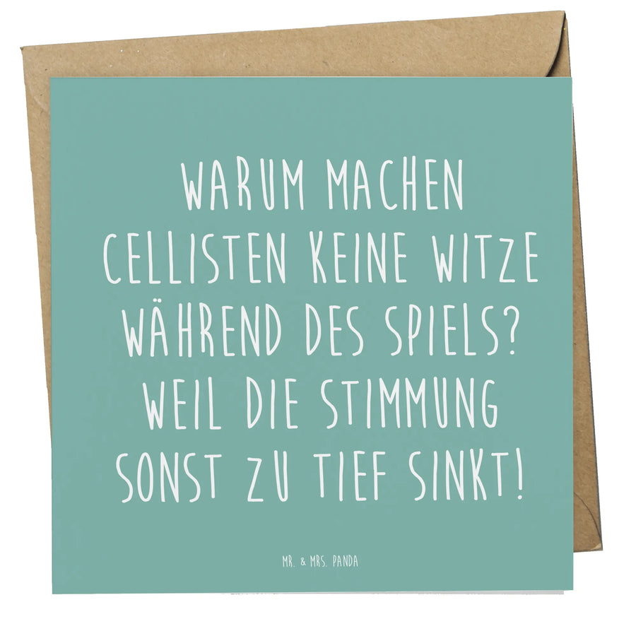 Und der witzige Spruch auf der Vorderseite bringt jeden zum Schmunzeln: "Warum machen Cellisten keine Witze während des Spiels? Weil die Stimmung sonst zu tief sinkt!" Diese humorvolle Note macht die Karte nicht nur zu einem Präsent, sondern auch zu einem Gesprächsstarter.