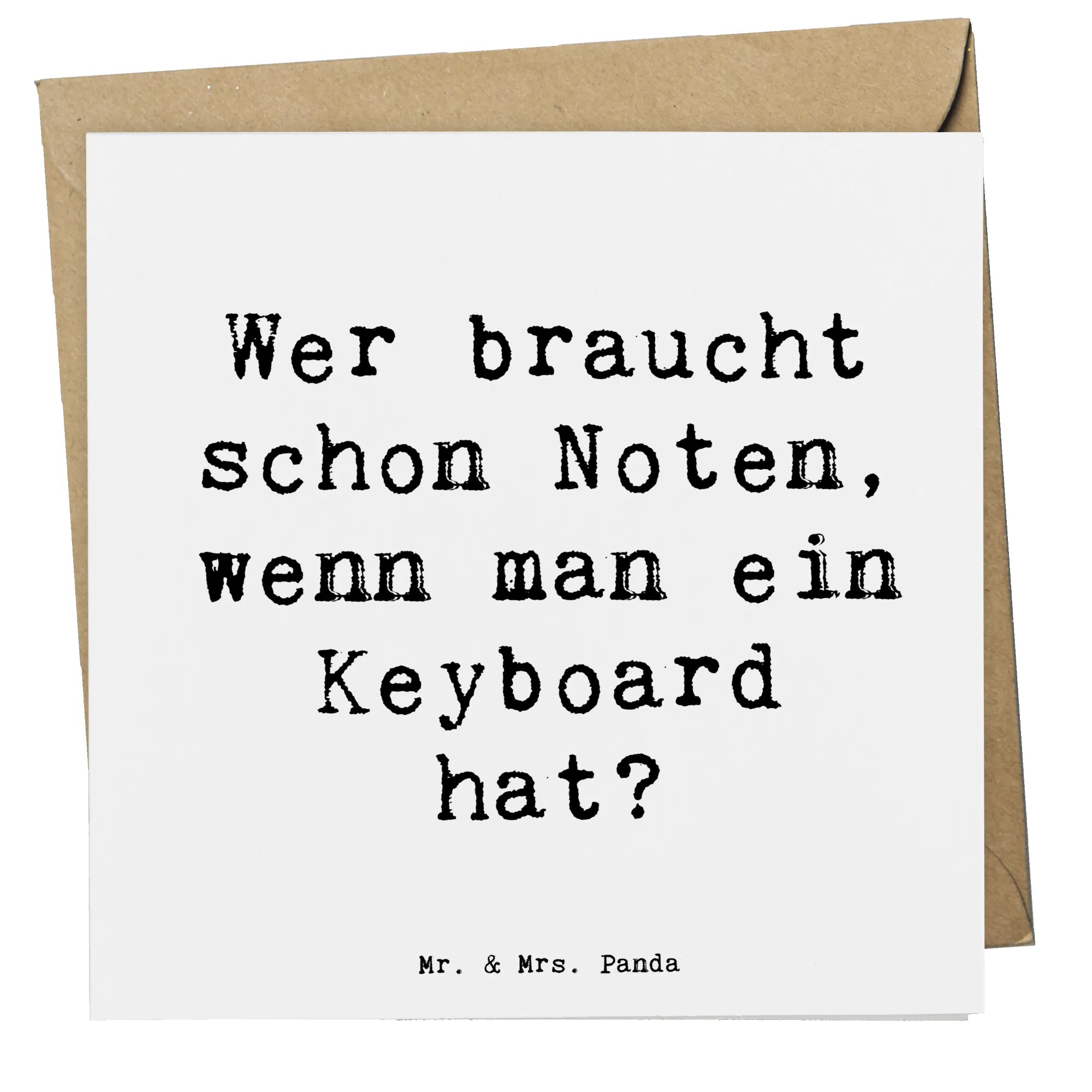 Die Größe von 140 mm x 140 mm macht die Karte handlich und perfekt für den Umschlag, der auch gleich mitgeliefert wird. Mit der hochwertigen Karton-Optik und dem edlen Design ist diese Karte ein echter Hingucker. Der Slogan "Wer braucht schon Noten, wenn man ein Keyboard hat?" bringt die Freude an der Musik gleich auf den Punkt.